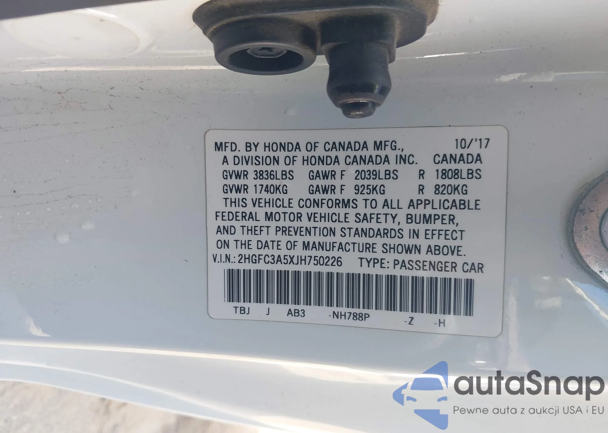 VIN: 2HGFC3A5XJH750226
