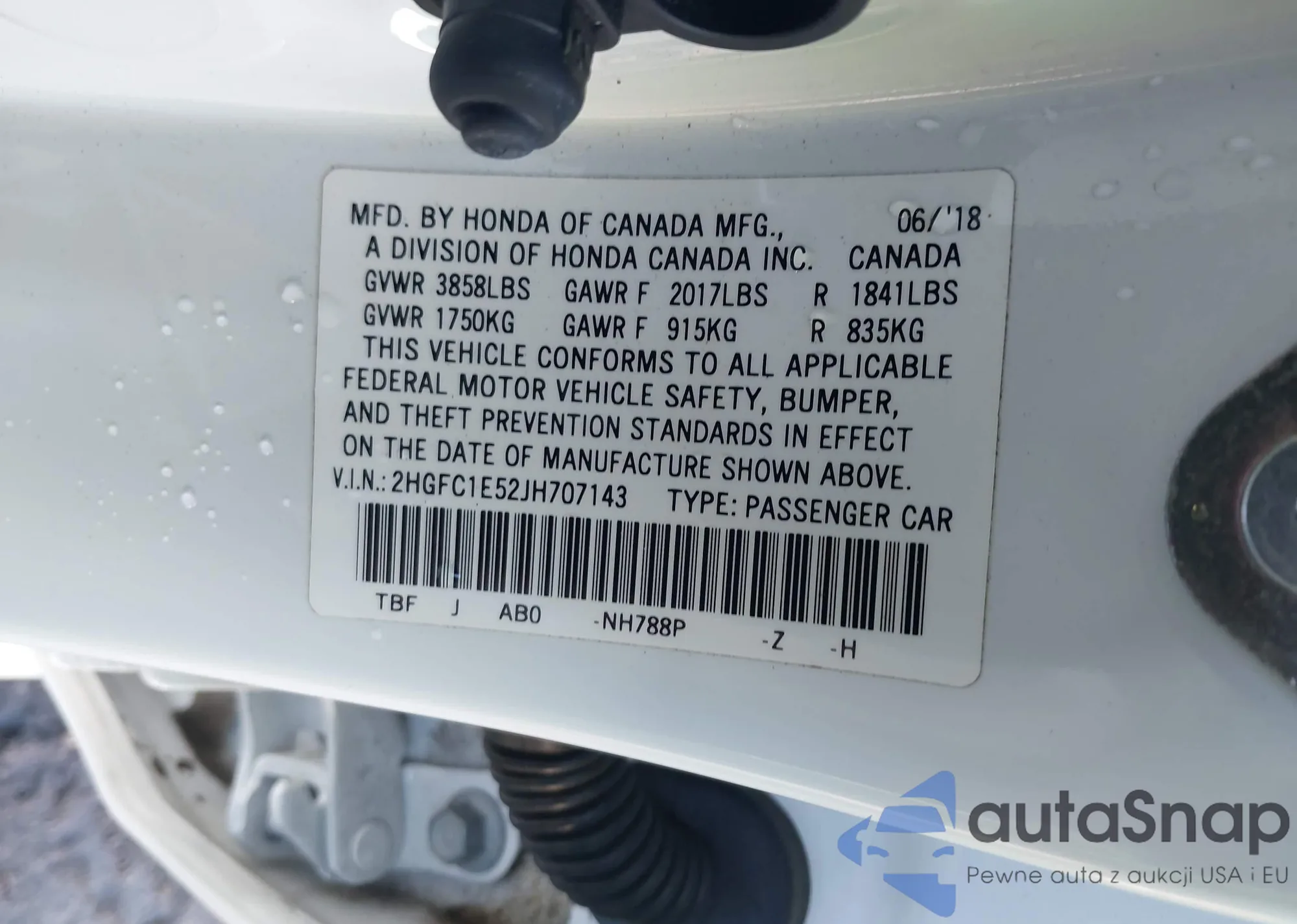 VIN: 2HGFC1E52JH707143