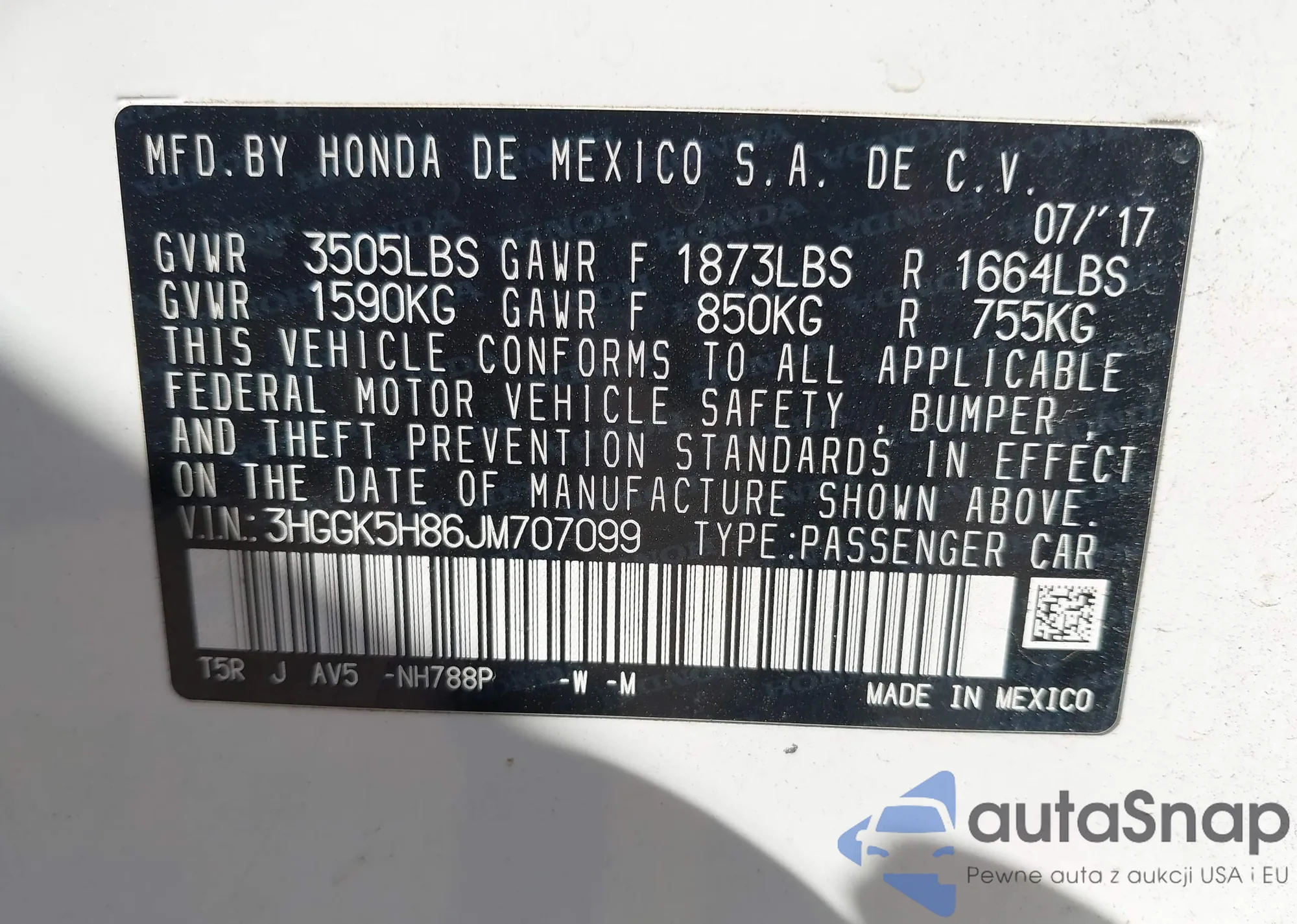 VIN: 3HGGK5H86JM707099