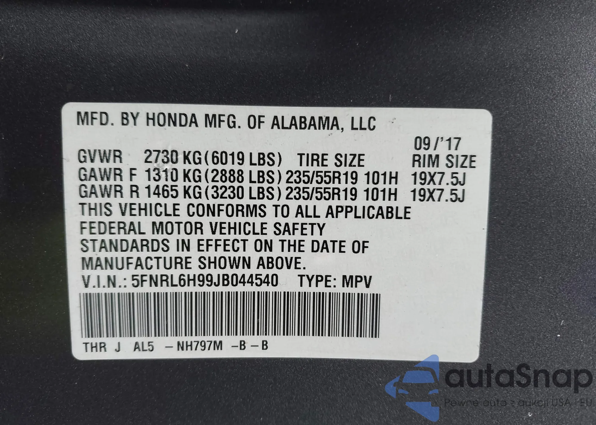 Samochód Honda Odyssey 2018 (VIN 5FNRL6H99JB044540) nie był wcześniej licytowany. Dokumenty są czyste, przebieg odpowiada lub jest niższy niż średnia rynku. Sprzedaje go firma ubezpieczeniowa – polecamy zakup. Dostawa do portu zajmie ok. 6–8 tygodni.