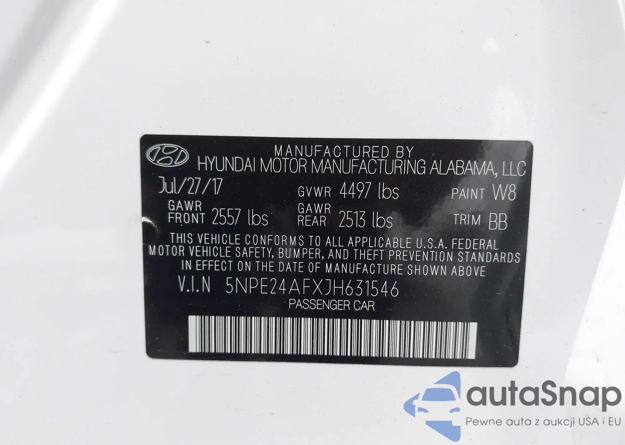 Samochód Hyundai Sonata 2018 (VIN 5NPE24AFXJH631546) nie był wcześniej licytowany. Dokumenty są czyste, przebieg odpowiada lub jest niższy niż średnia rynku. Sprzedaje go firma ubezpieczeniowa – polecamy zakup. Dostawa do portu zajmie ok. 6–8 tygodni.