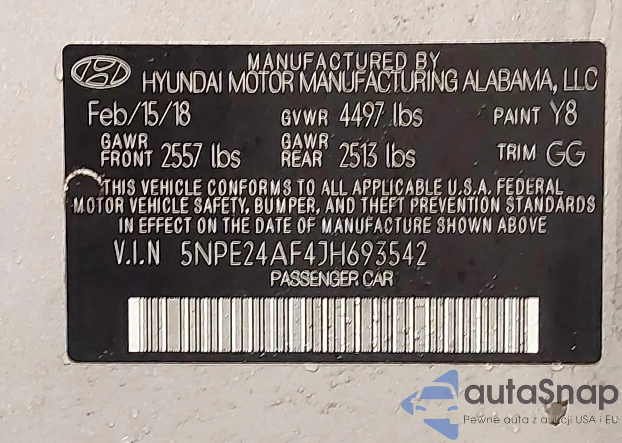 • VIN: 5NPE24AF4JH693542