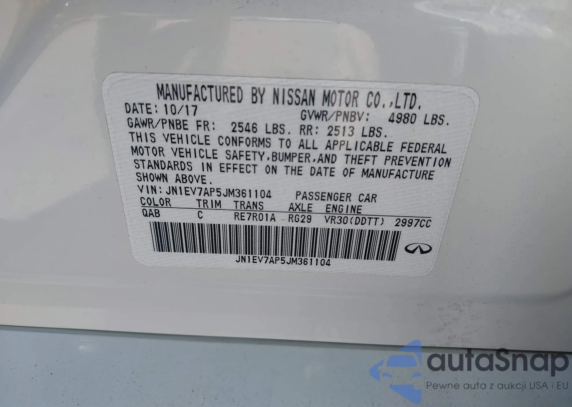 • VIN: JN1EV7AP5JM361104