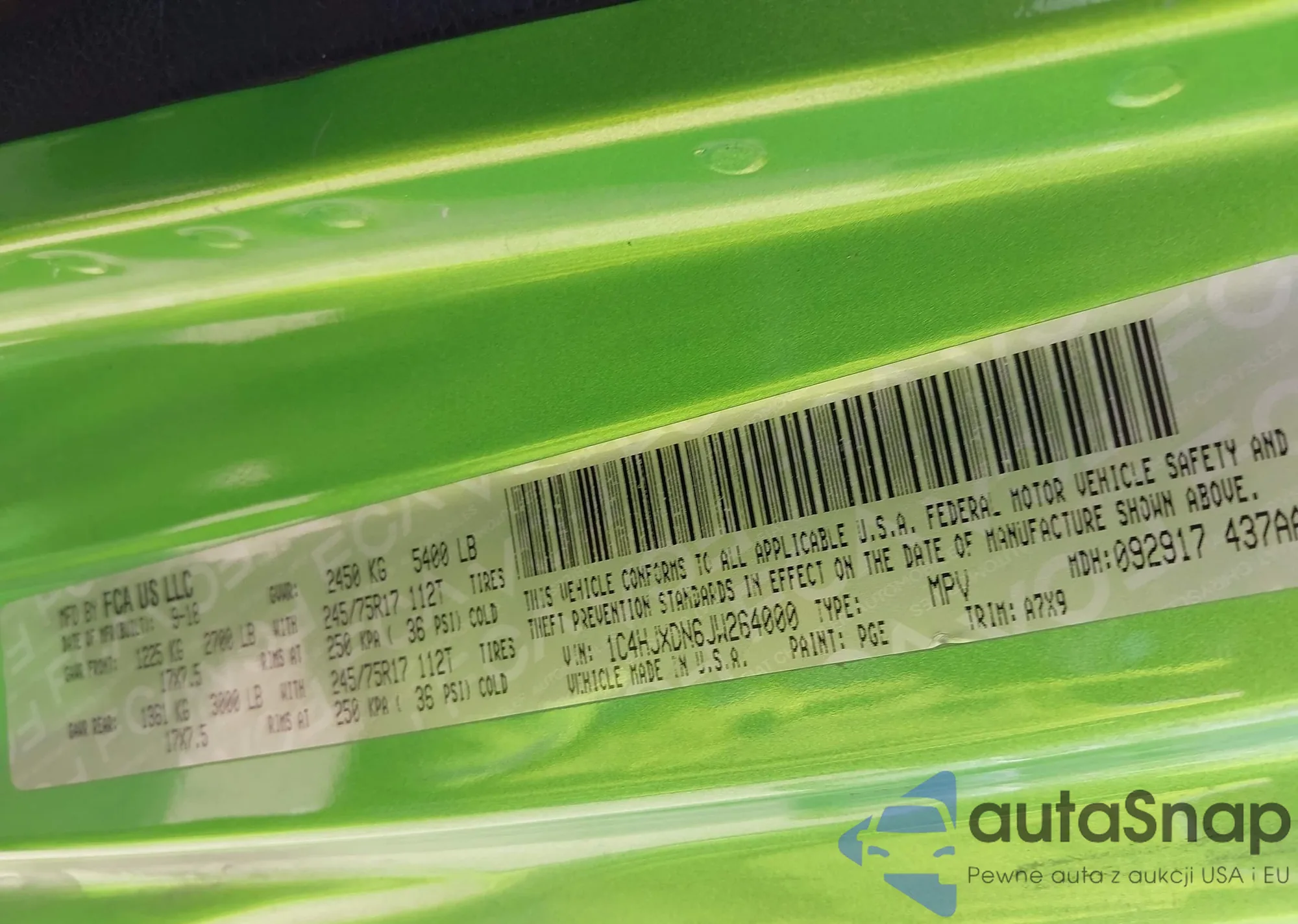 • VIN: 1C4HJXDN6JW264000