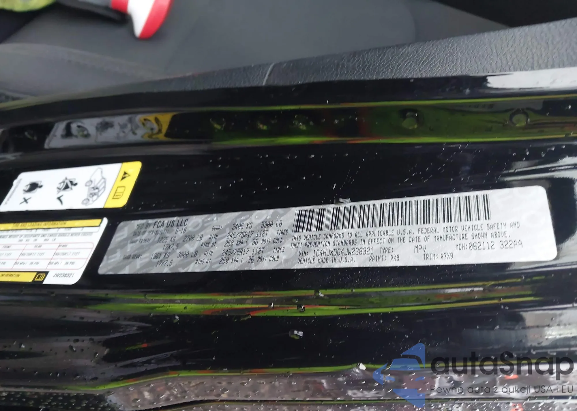 • VIN: 1C4HJXDG4JW238321
