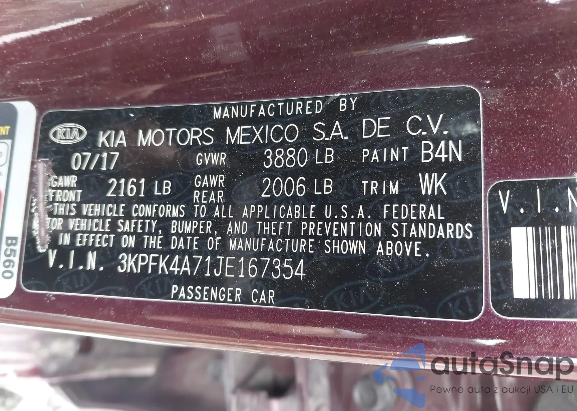 VIN: 3KPFK4A71JE167354
