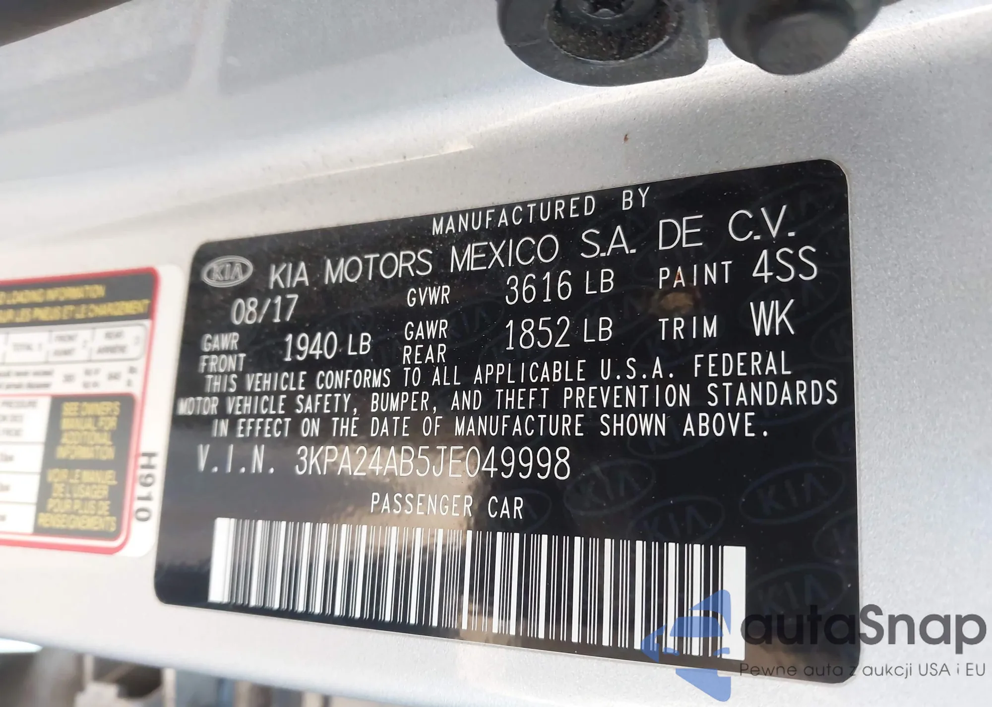 VIN: 3KPA24AB5JE049998