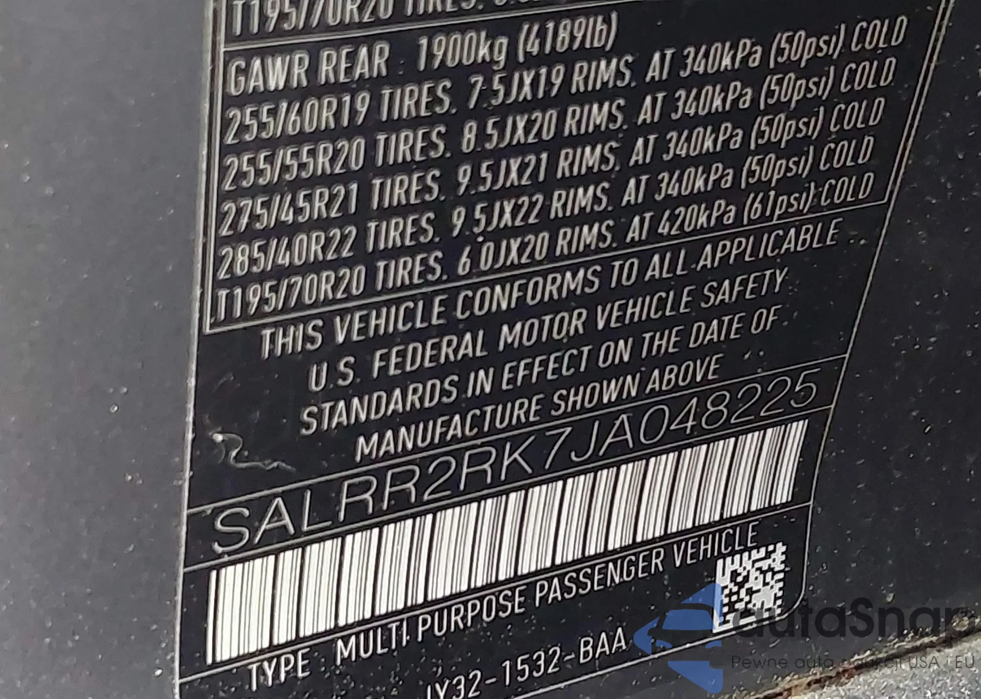 VIN: SALRR2RK7JA048225