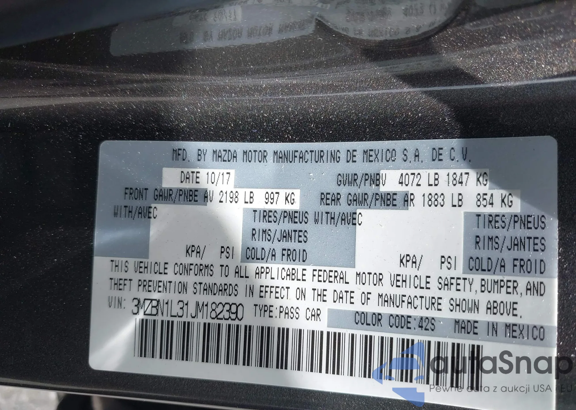 • VIN: 3MZBN1L31JM182390