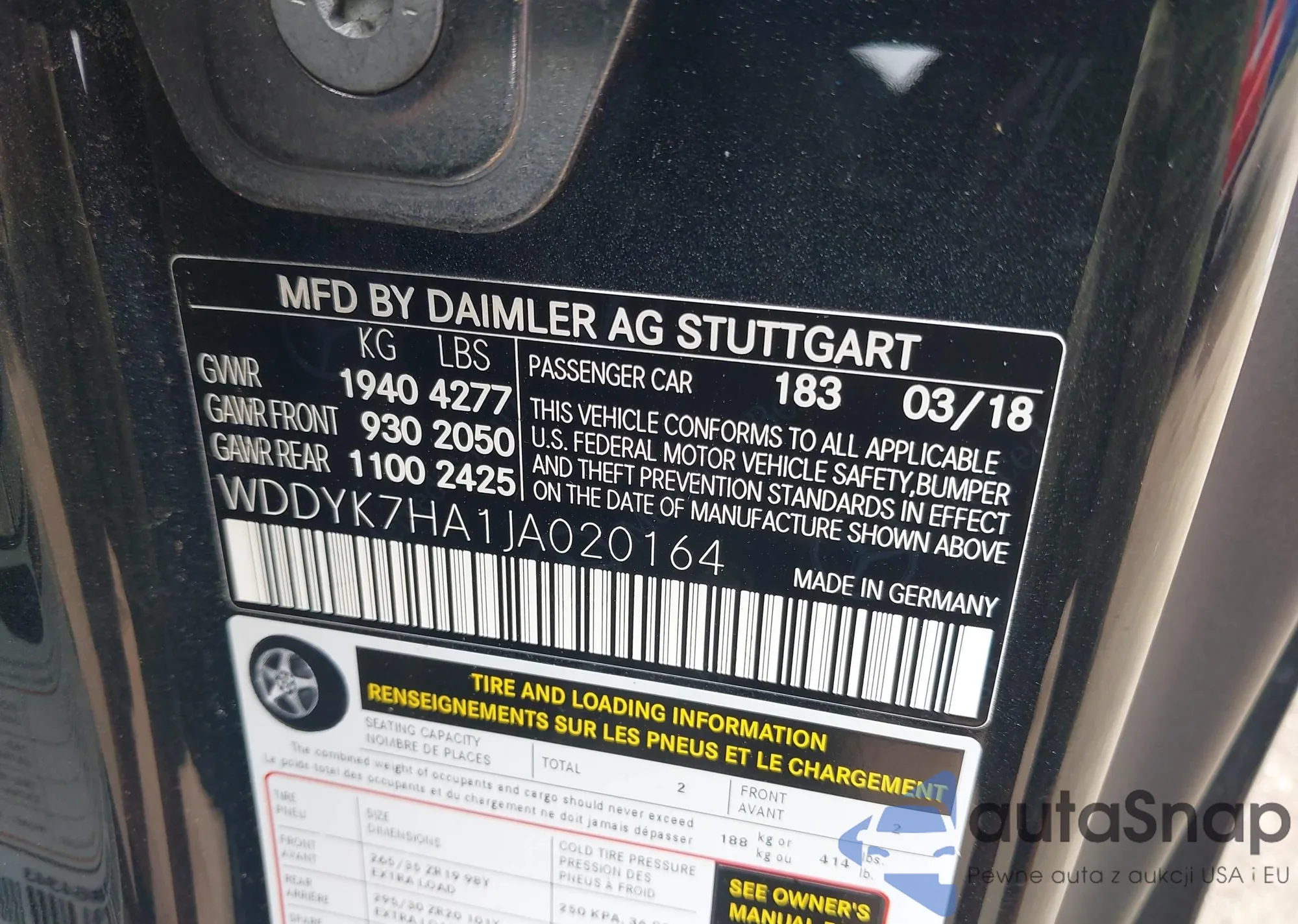 VIN: WDDYK7HA1JA020164