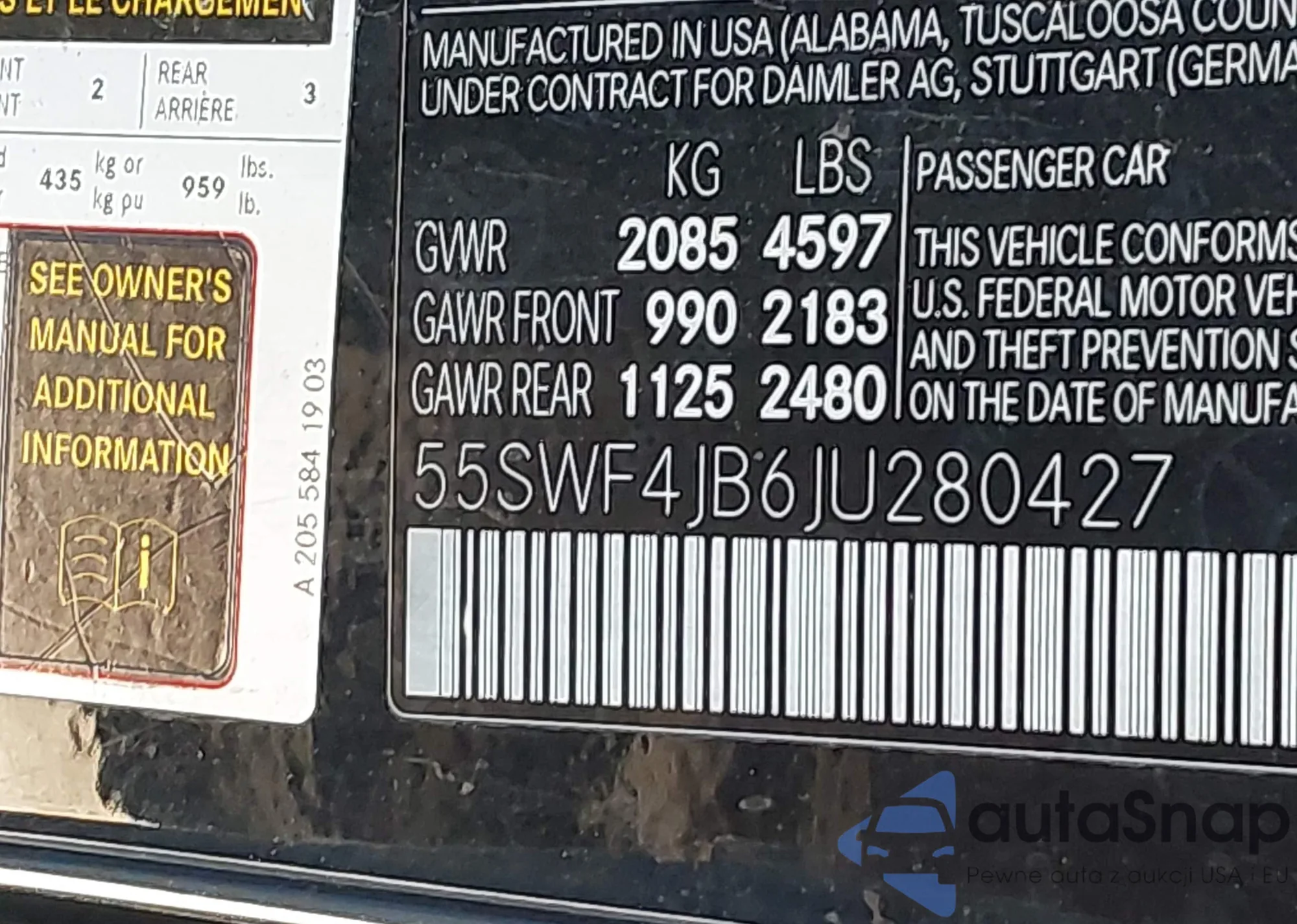 VIN: 55SWF4JB6JU280427