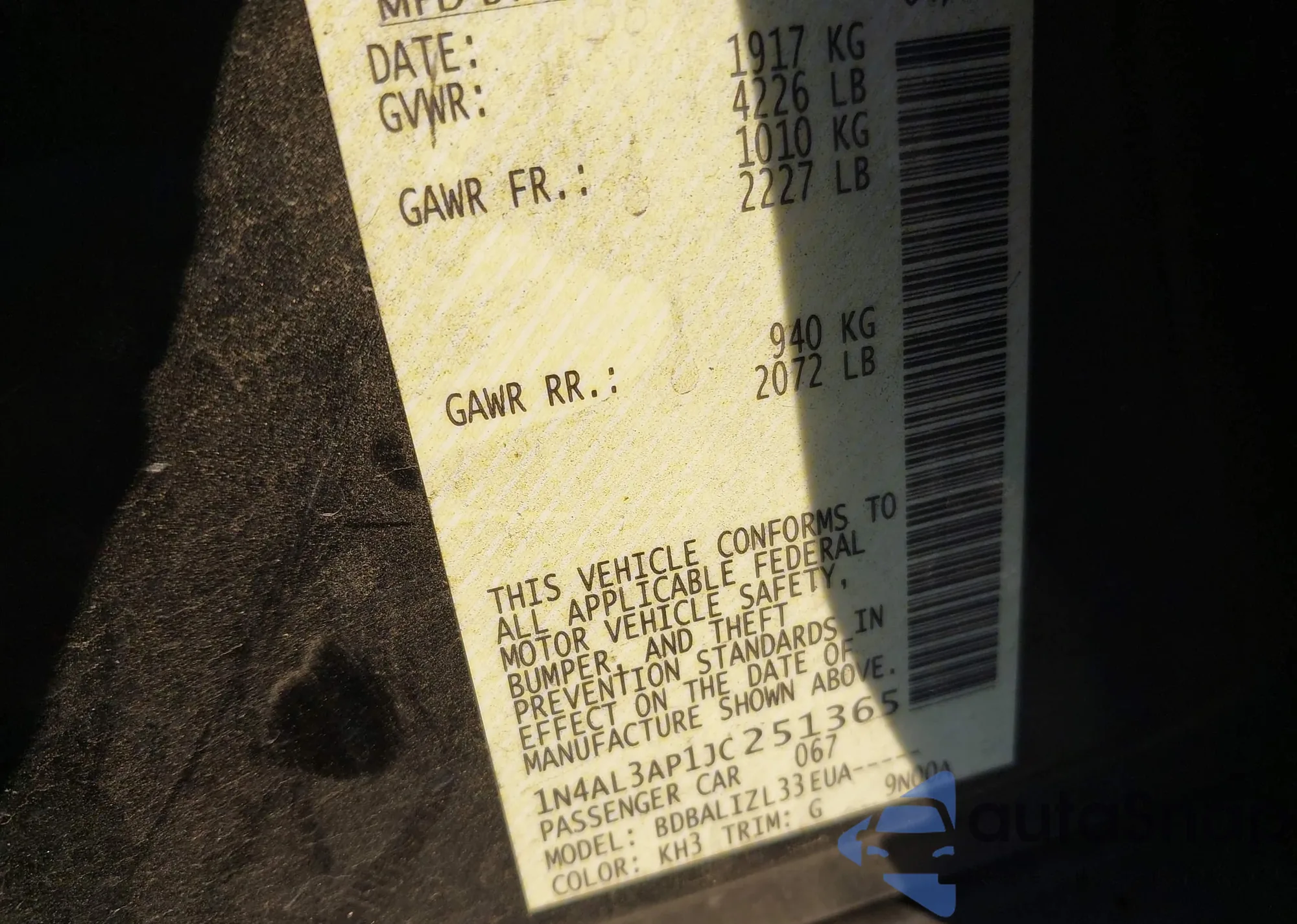 • VIN: 1N4AL3AP1JC251365