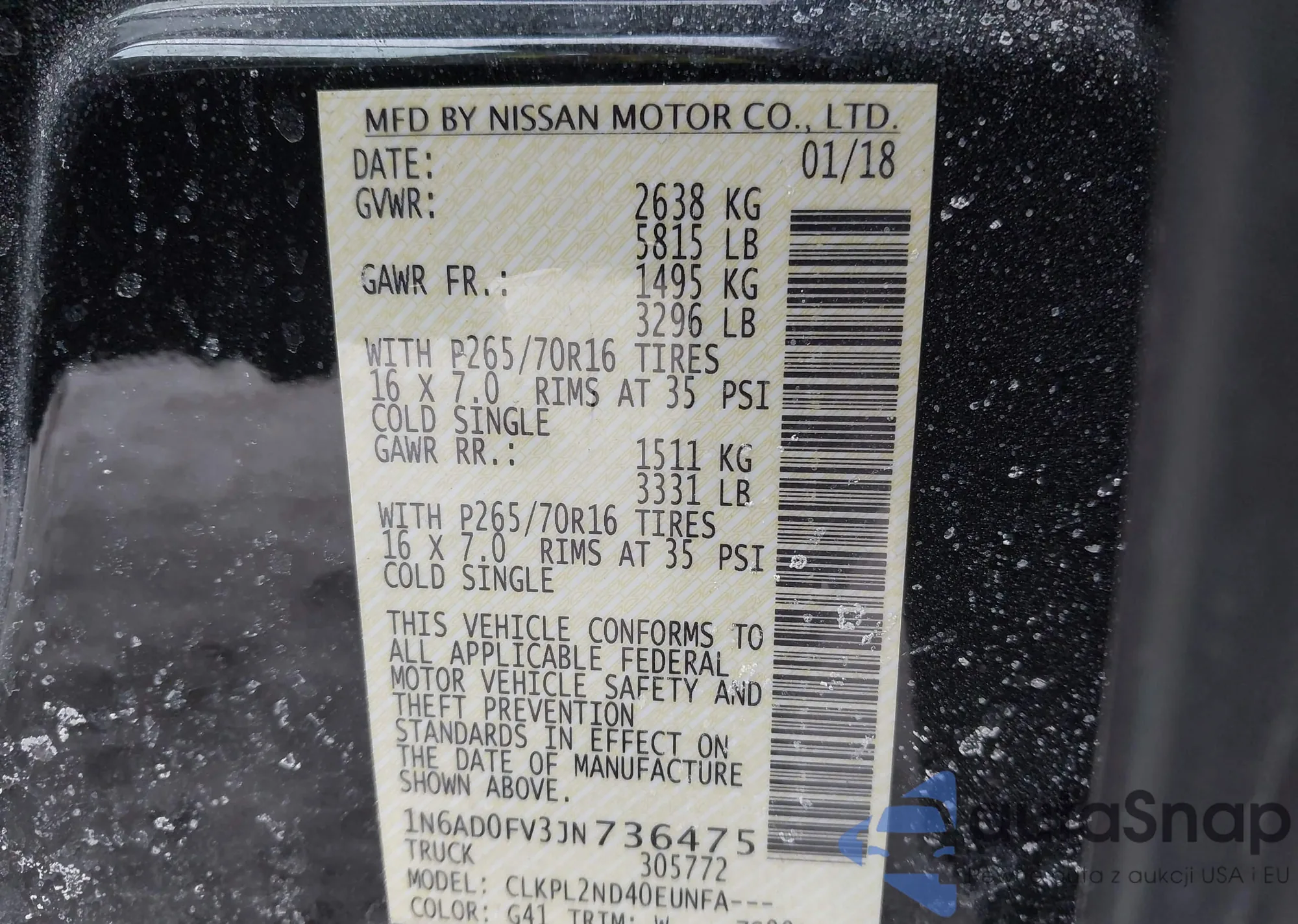• VIN: 1N6AD0FV3JN736475