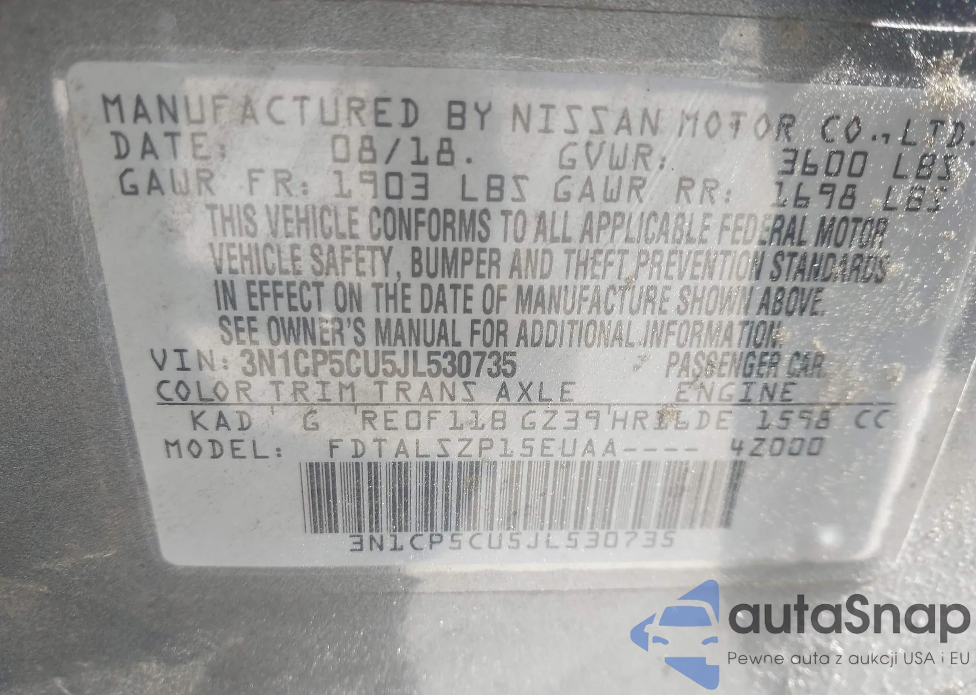 • VIN: 3N1CP5CU5JL530735