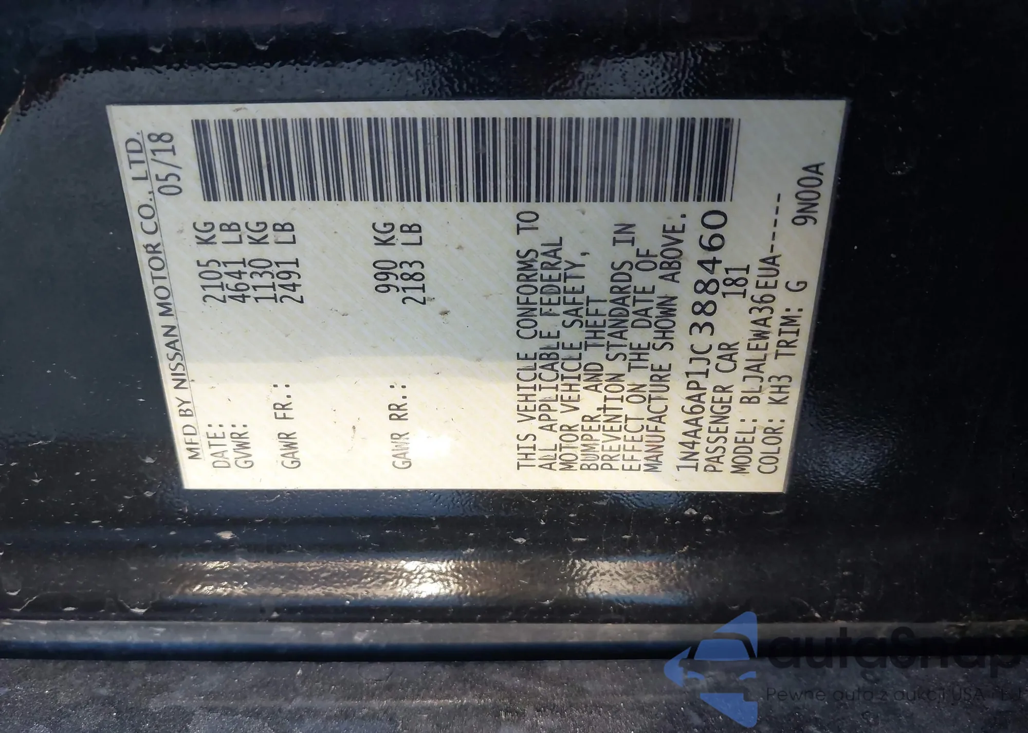 Samochód Nissan Maxima 2018 (VIN 1N4AA6AP1JC388460) nie był wcześniej licytowany. Dokumenty są czyste, przebieg odpowiada lub jest niższy niż średnia rynku. Sprzedaje go firma ubezpieczeniowa – polecamy zakup. Dostawa do portu zajmie ok. 6–8 tygodni.