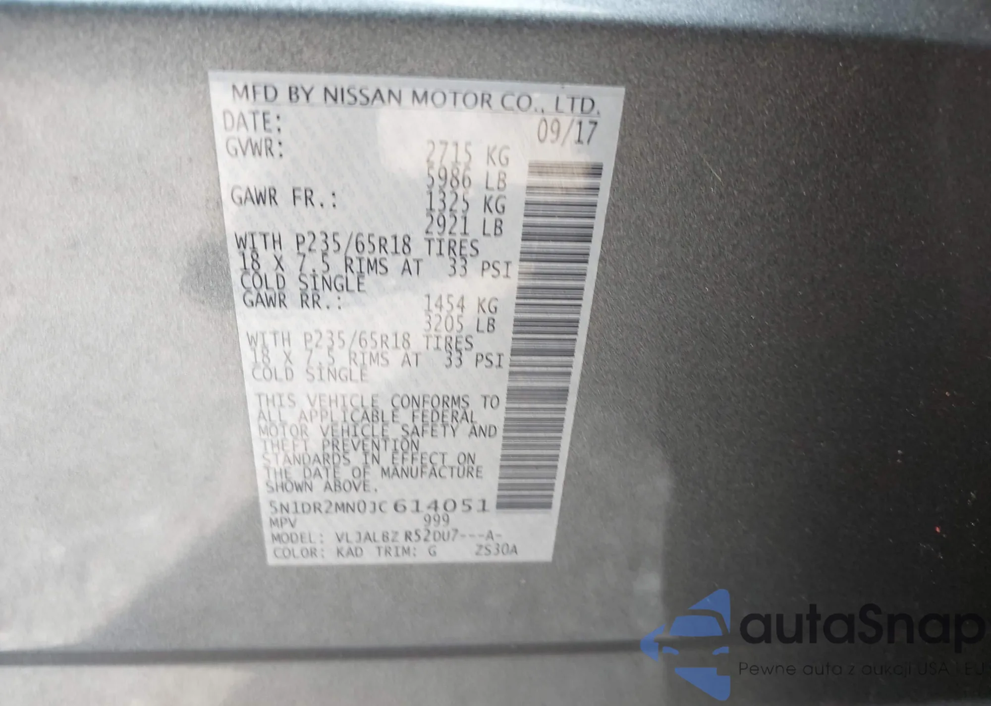 • VIN: 5N1DR2MN0JC614051