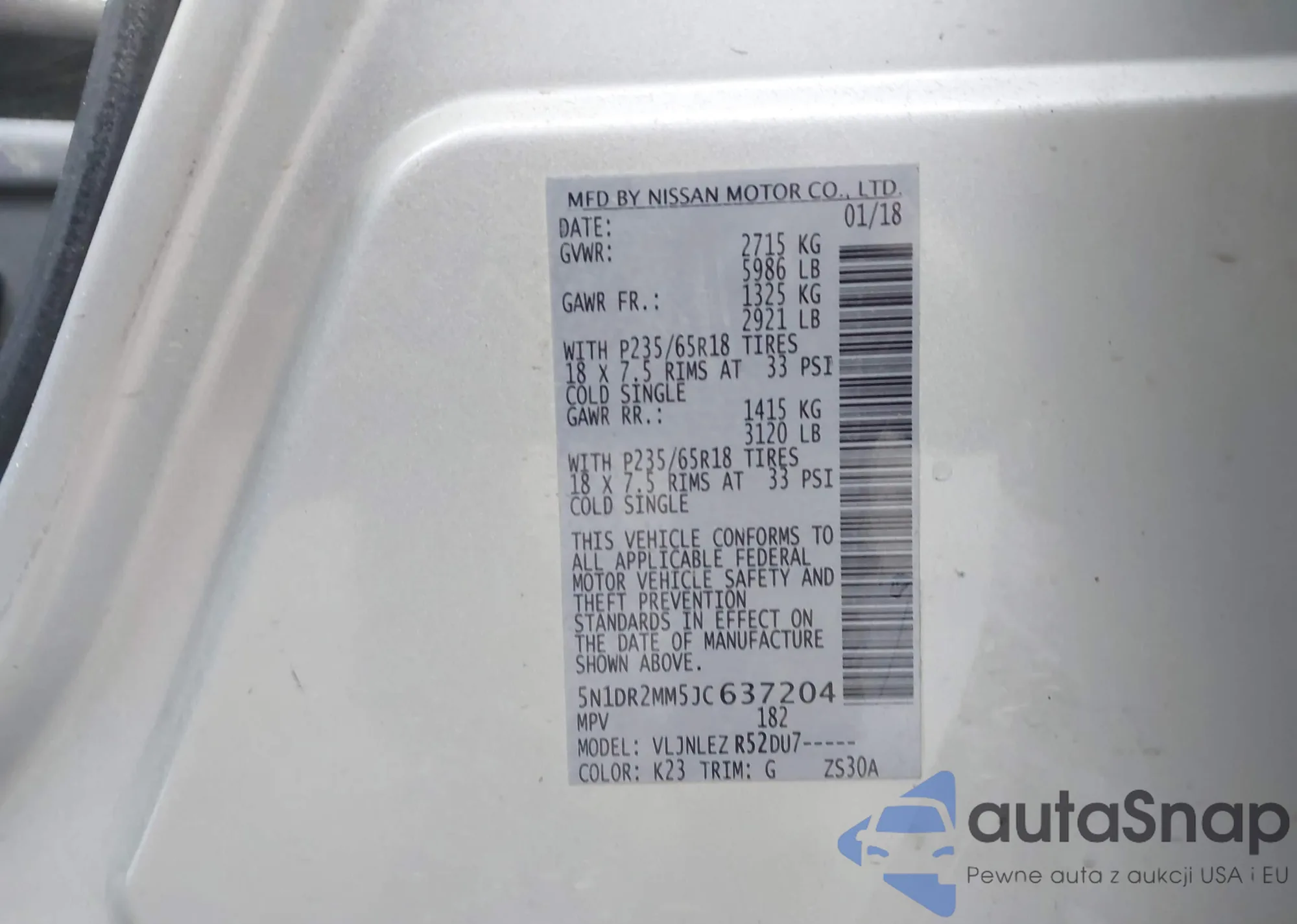 • VIN: 5N1DR2MM5JC637204