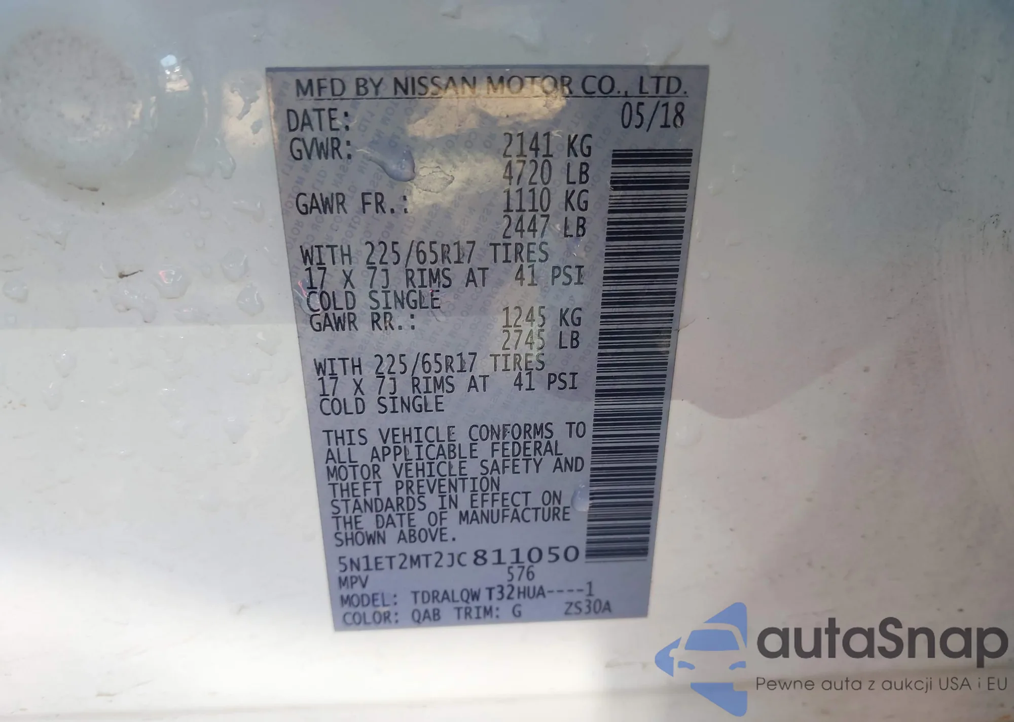 Samochód Nissan Rogue 2018 (VIN 5N1ET2MT2JC811050) był już licytowany 1 razy i/lub sprzedaje go niezweryfikowany sprzedawca. Zalecamy raport Carfax i potwierdzenie możliwości rejestracji pojazdu przed zakupem.