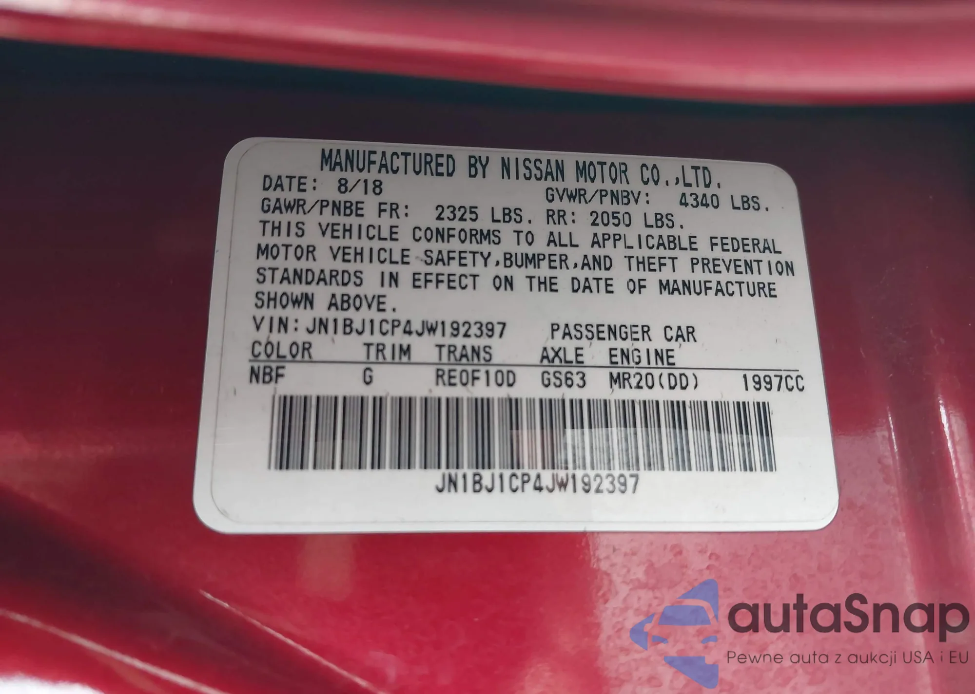 • VIN: JN1BJ1CP4JW192397