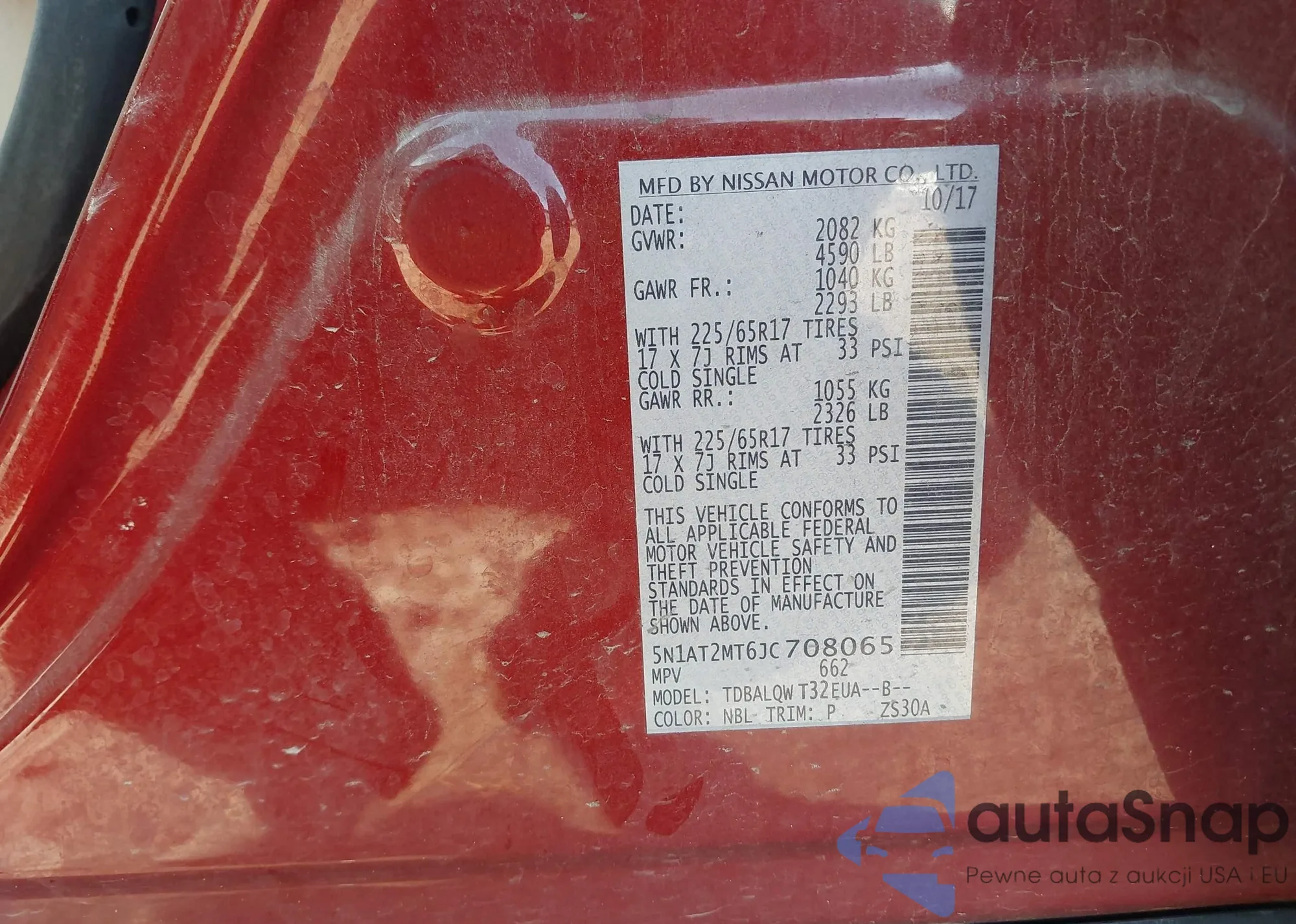 Samochód Nissan Rogue 2018 (VIN 5N1AT2MT6JC708065) nie był wcześniej licytowany. Dokumenty są czyste, przebieg odpowiada lub jest niższy niż średnia rynku. Sprzedaje go firma ubezpieczeniowa – polecamy zakup. Dostawa do portu zajmie ok. 6–8 tygodni.