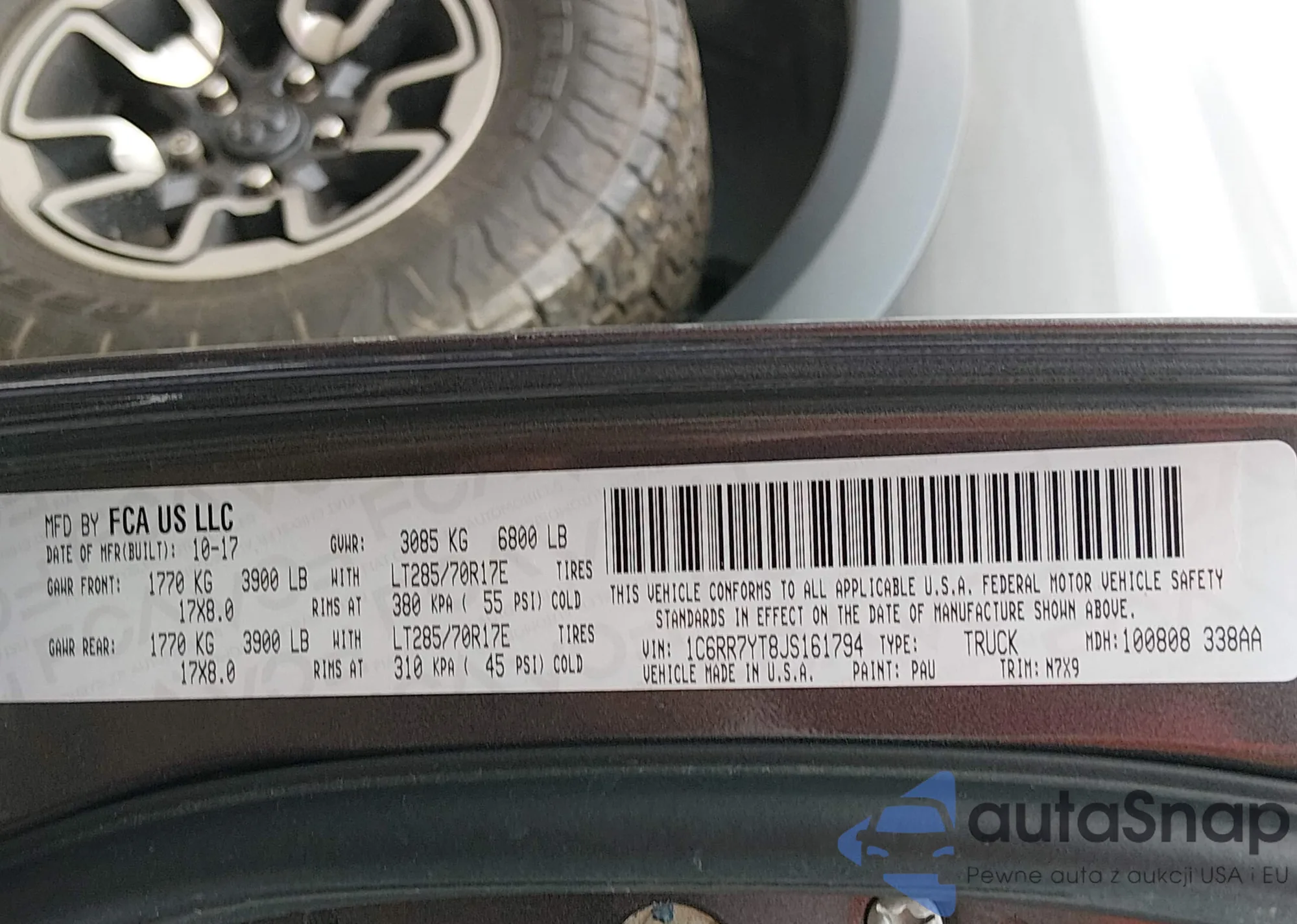 VIN: 1C6RR7YT8JS161794