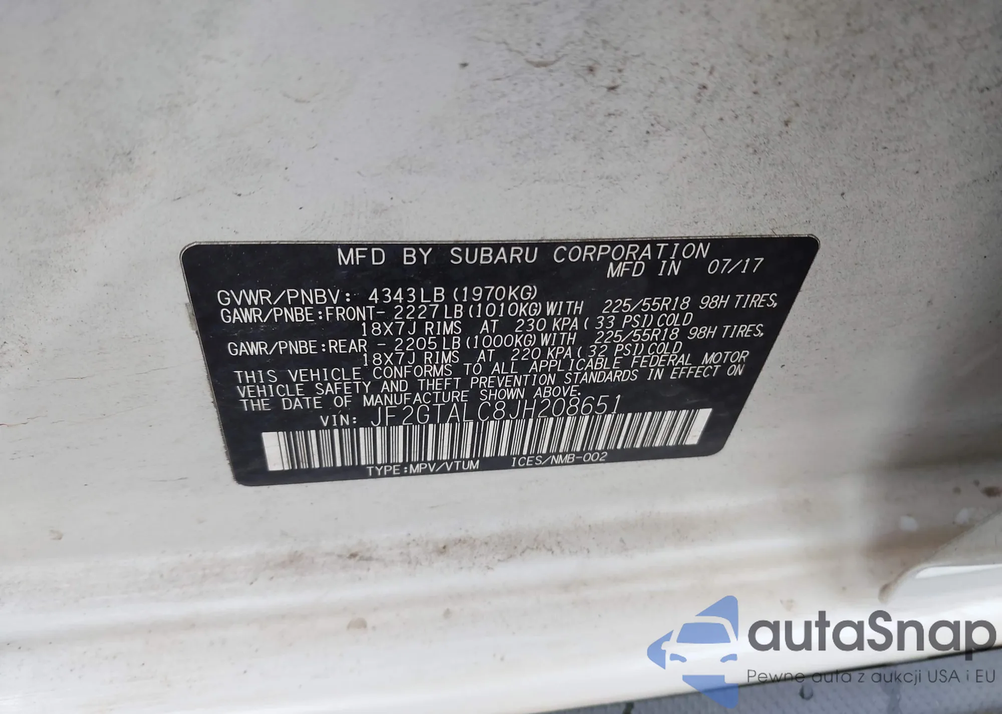 Samochód Subaru XV 2018 (VIN JF2GTALC8JH208651) nie był wcześniej licytowany. Dokumenty są czyste, przebieg odpowiada lub jest niższy niż średnia rynku. Sprzedaje go firma ubezpieczeniowa – polecamy zakup. Dostawa do portu zajmie ok. 6–8 tygodni.