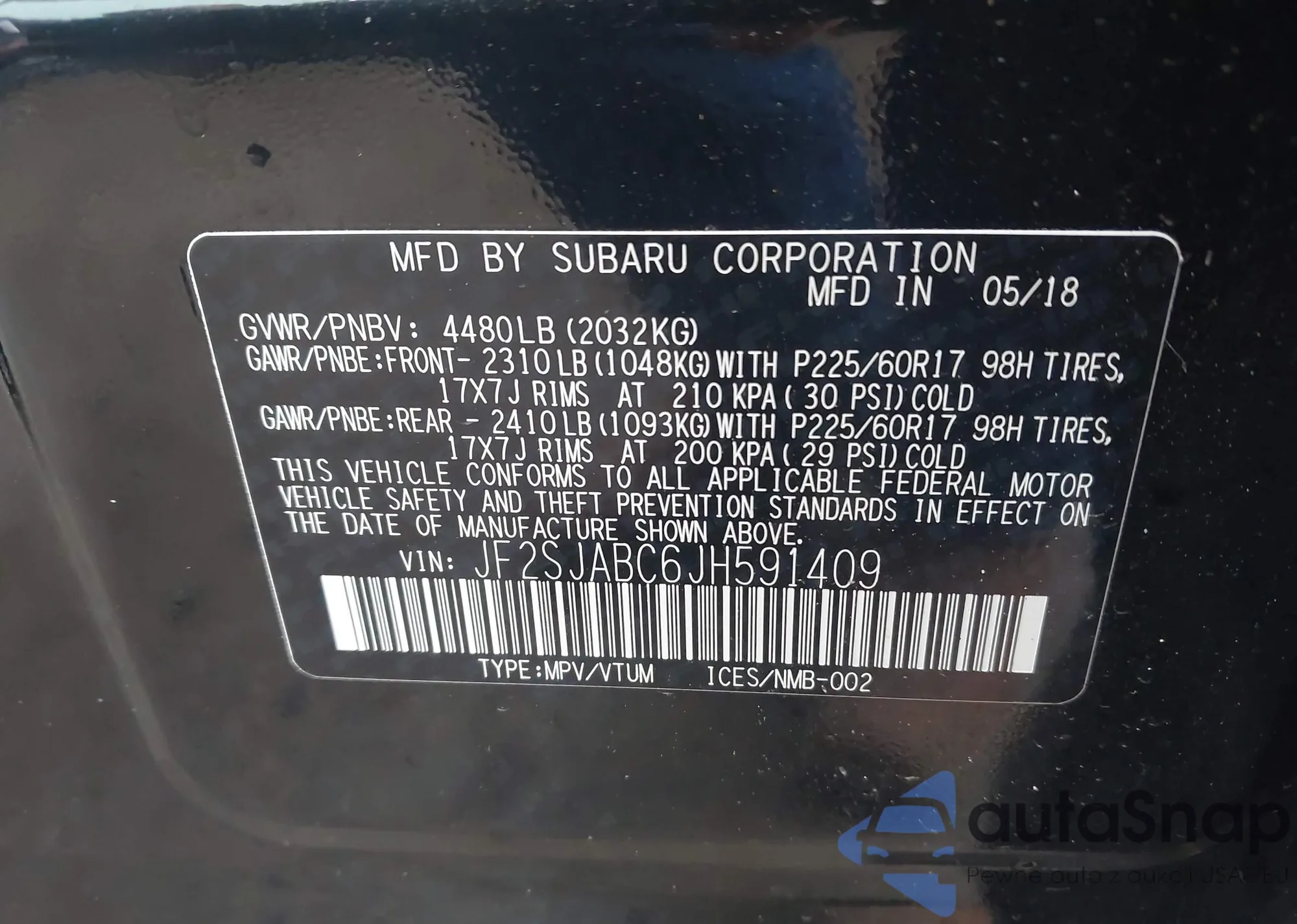 VIN: JF2SJABC6JH591409