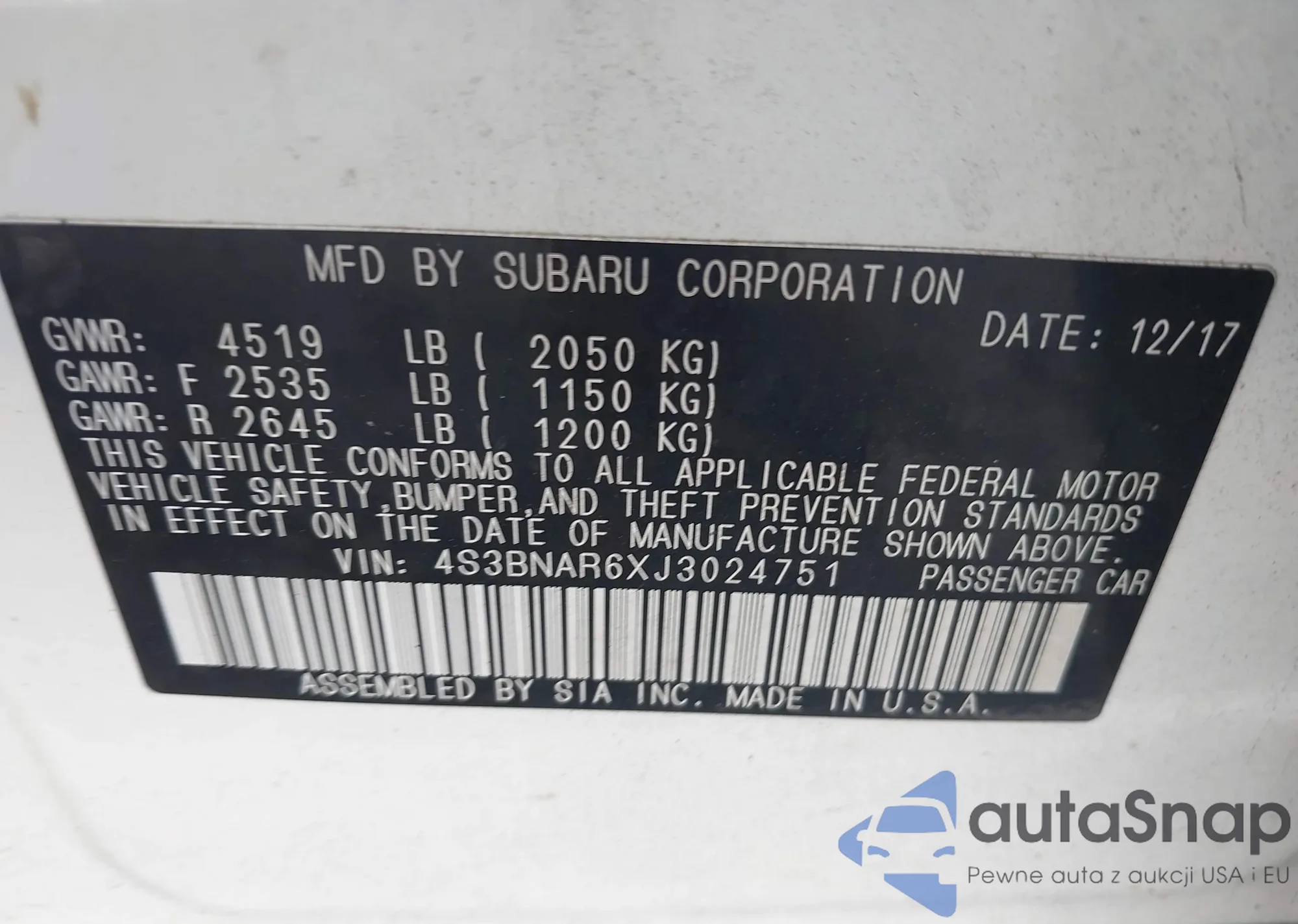 Marka: 2018 Subaru Legacy 2....