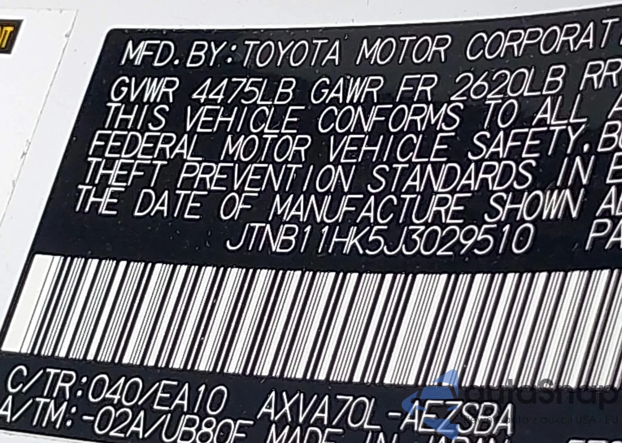 VIN: JTNB11HK5J3029510