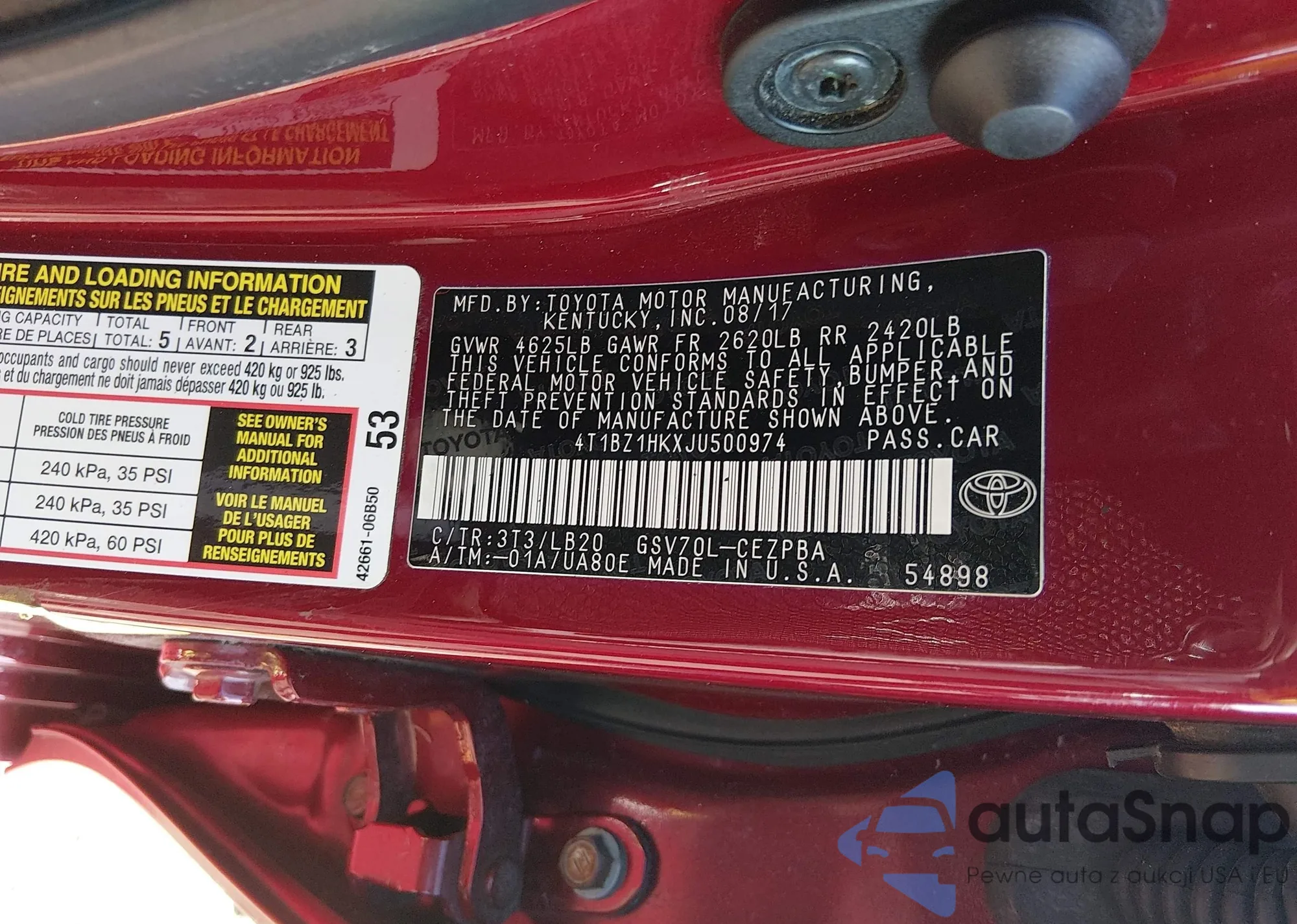 Samochód Toyota Camry 2018 (VIN 4T1BZ1HKXJU500974) nie był wcześniej licytowany. Dokumenty są czyste, przebieg odpowiada lub jest niższy niż średnia rynku. Sprzedaje go firma ubezpieczeniowa – polecamy zakup. Dostawa do portu zajmie ok. 6–8 tygodni.