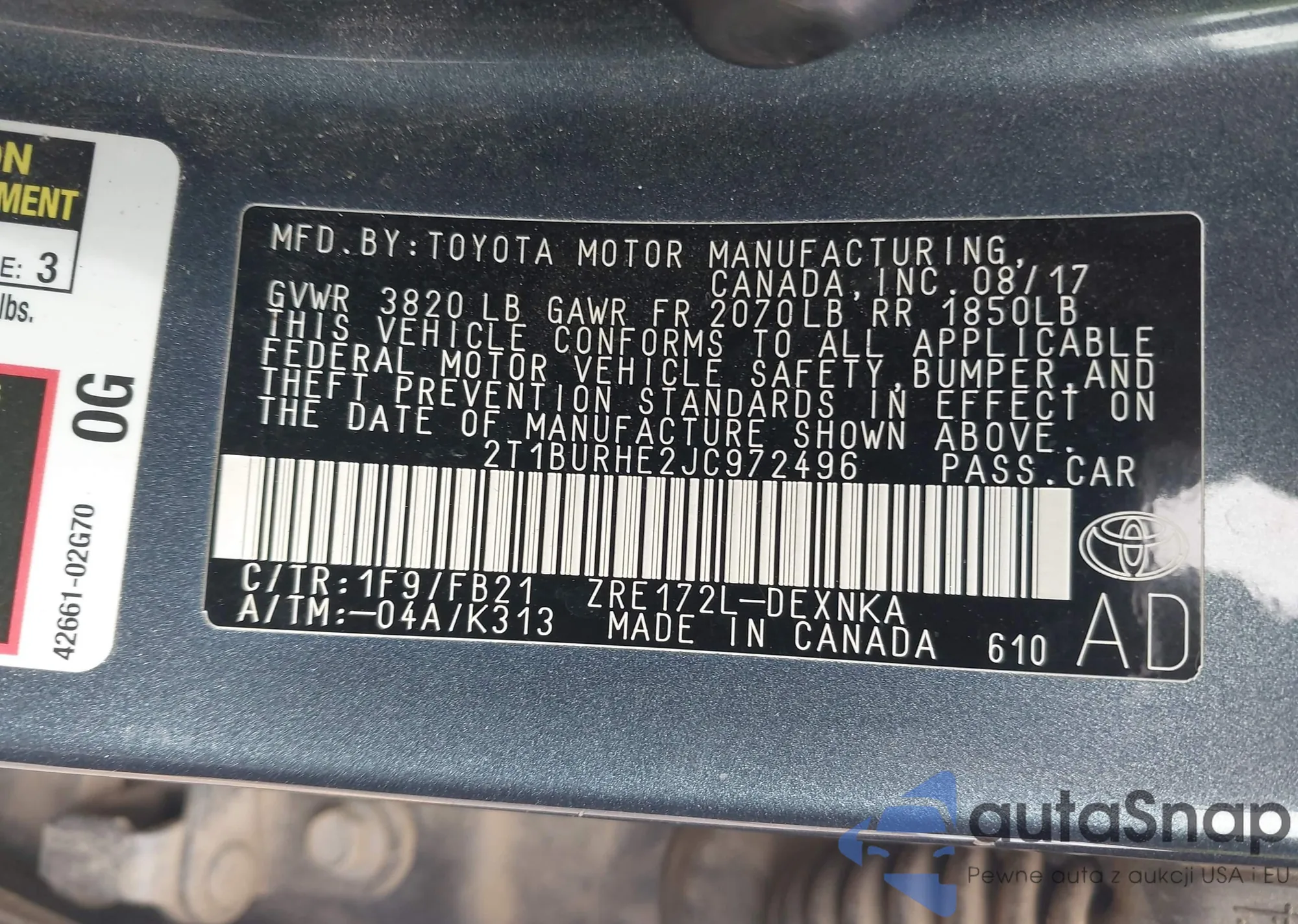 Toyota Corolla 2018 – Historia pojazdu (sprzedany na IAAI)