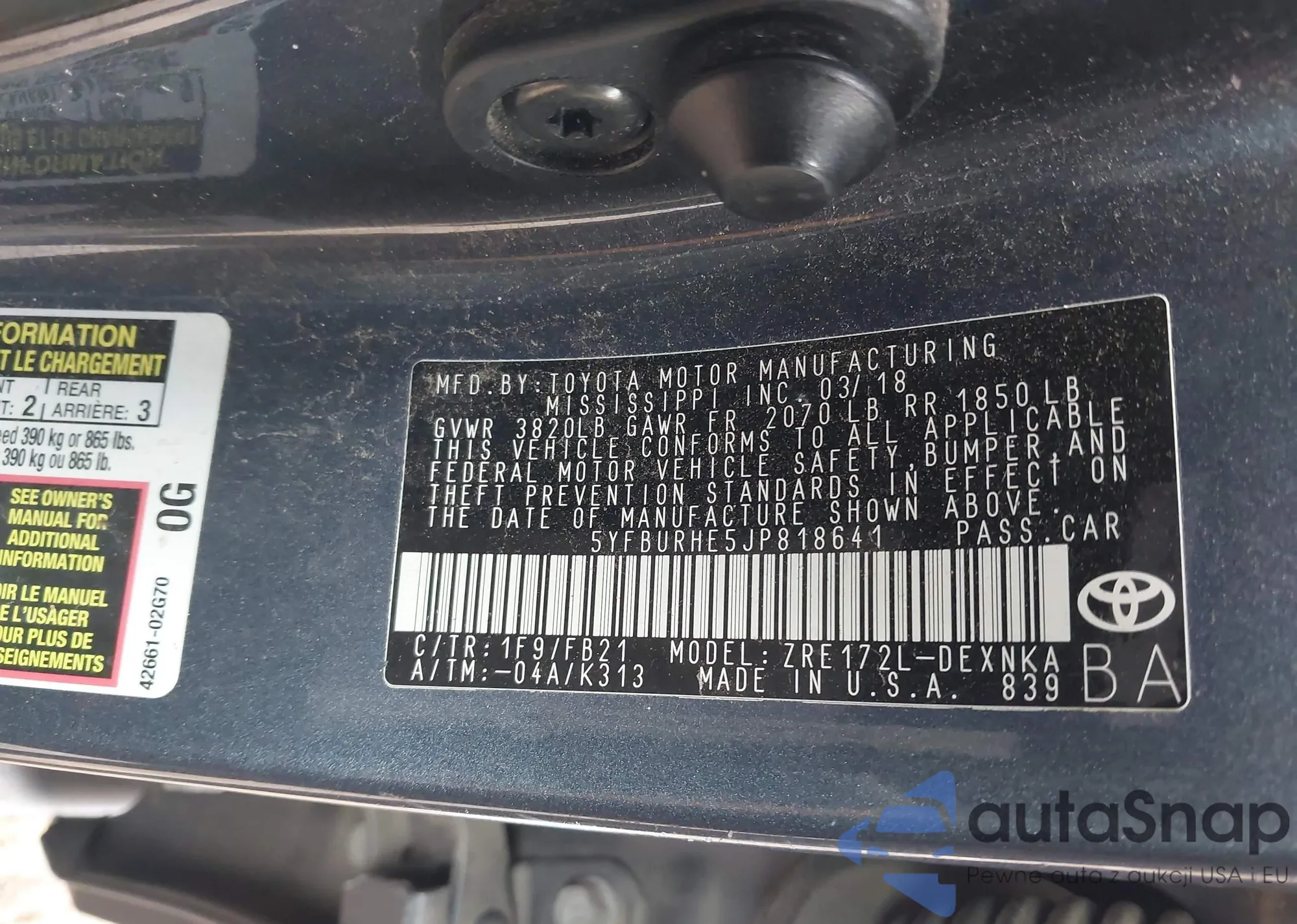 Samochód Toyota Corolla 2018 (VIN 5YFBURHE5JP818641) sprzedaje go niezweryfikowany sprzedawca. Zalecamy raport Carfax i potwierdzenie możliwości rejestracji pojazdu przed zakupem.