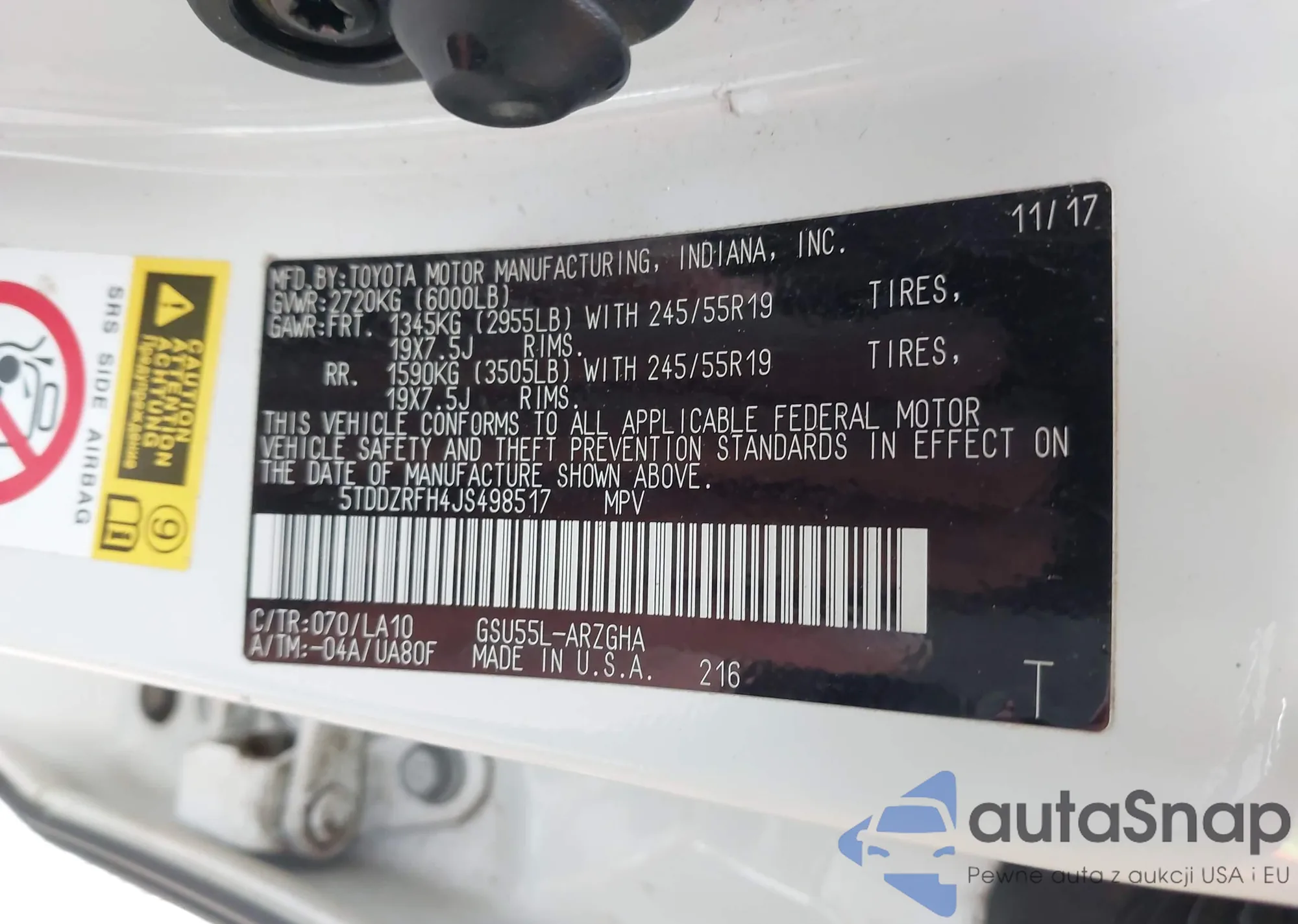 Samochód Toyota Highlander 2018 (VIN 5TDDZRFH4JS498517) ma dokumenty uniemożliwiające rejestrację. Mogą pojawić się trudności przy eksporcie i rejestracji. Skontaktuj się z ekspertami AutaSnap w celu znalezienia alternatywy.