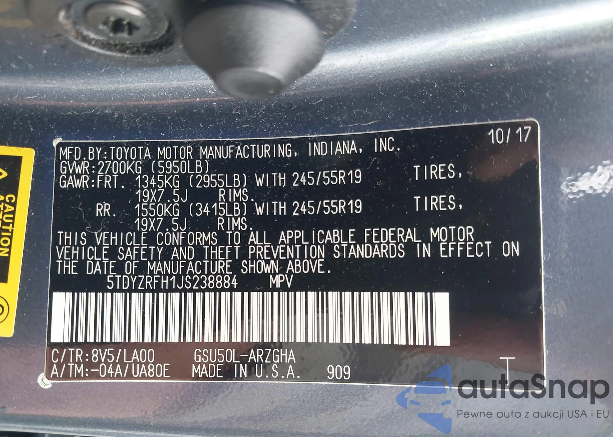VIN: 5TDYZRFH1JS238884