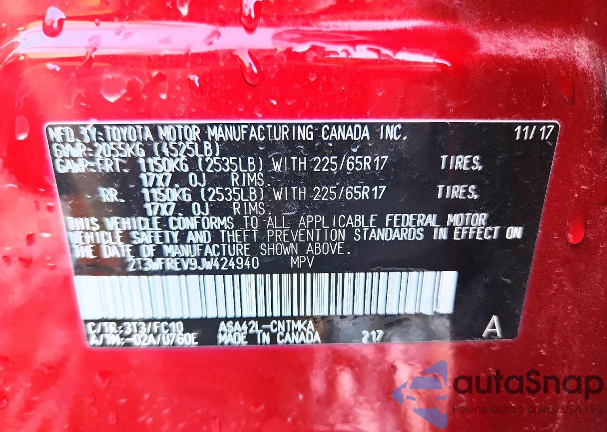Samochód Toyota RAV 4 2018 (VIN 2T3WFREV9JW424940) nie był wcześniej licytowany. Dokumenty są czyste, przebieg odpowiada lub jest niższy niż średnia rynku. Sprzedaje go firma ubezpieczeniowa – polecamy zakup. Dostawa do portu zajmie ok. 6–8 tygodni.