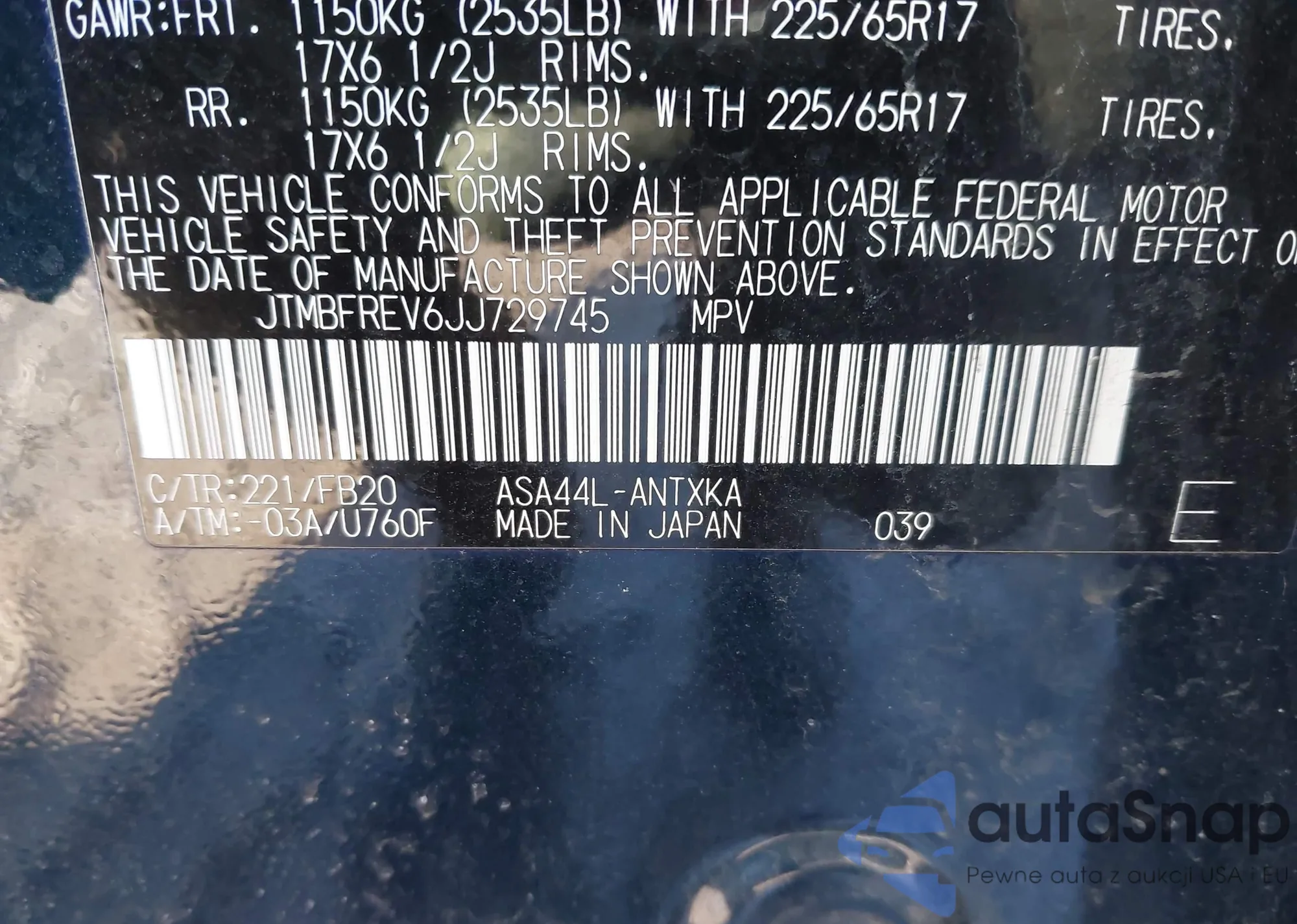 VIN: JTMBFREV6JJ729745