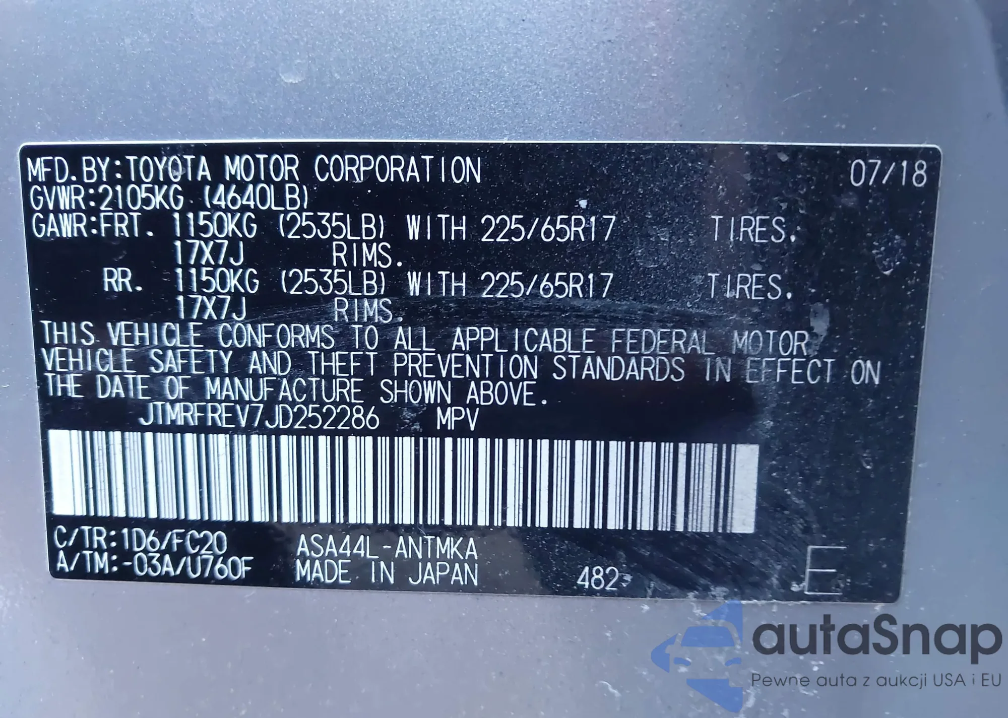 VIN: JTMRFREV7JD252286