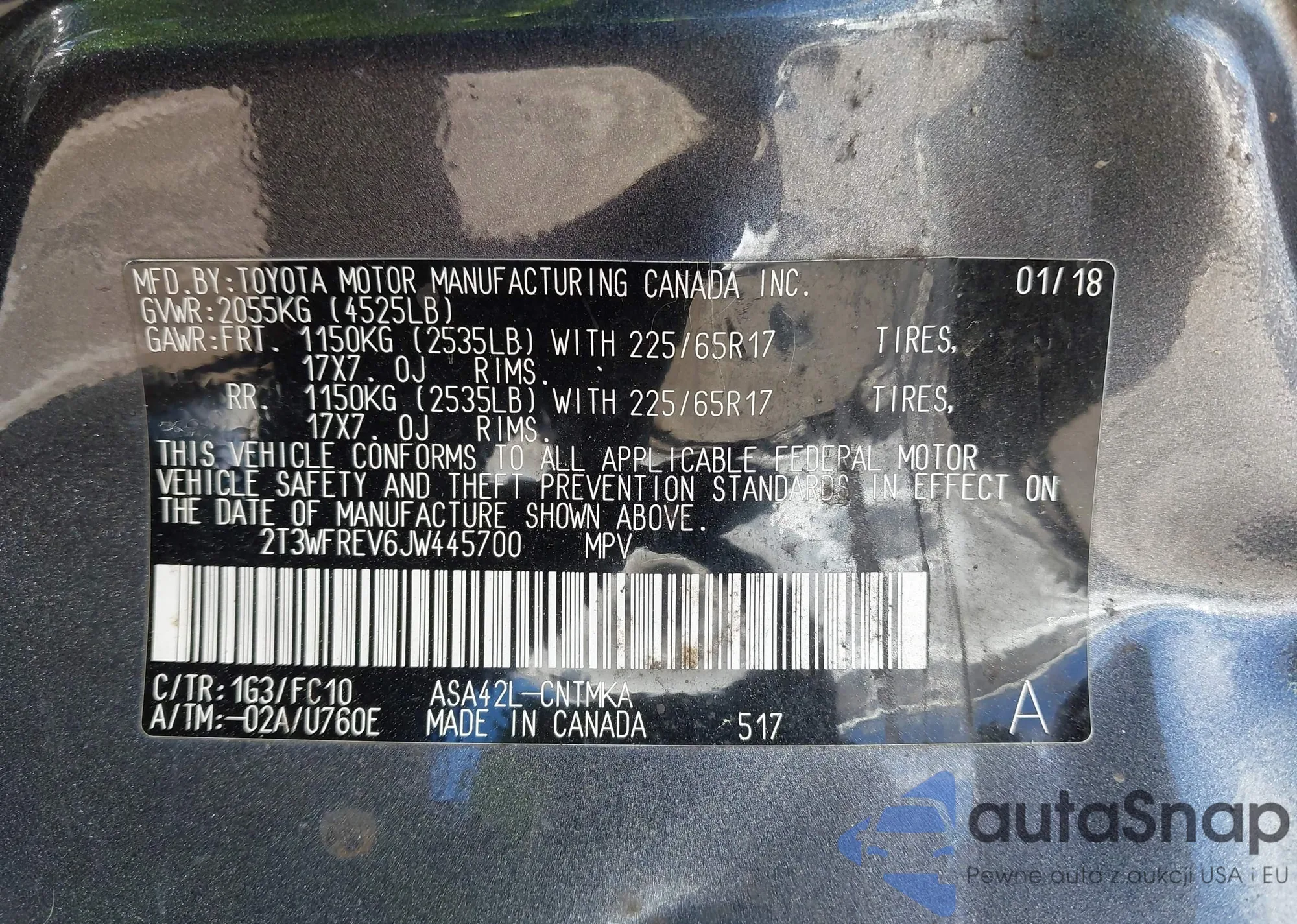 Samochód Toyota RAV 4 2018 (VIN 2T3WFREV6JW445700) nie był wcześniej licytowany. Dokumenty są czyste, przebieg odpowiada lub jest niższy niż średnia rynku. Sprzedaje go firma ubezpieczeniowa – polecamy zakup. Dostawa do portu zajmie ok. 6–8 tygodni.