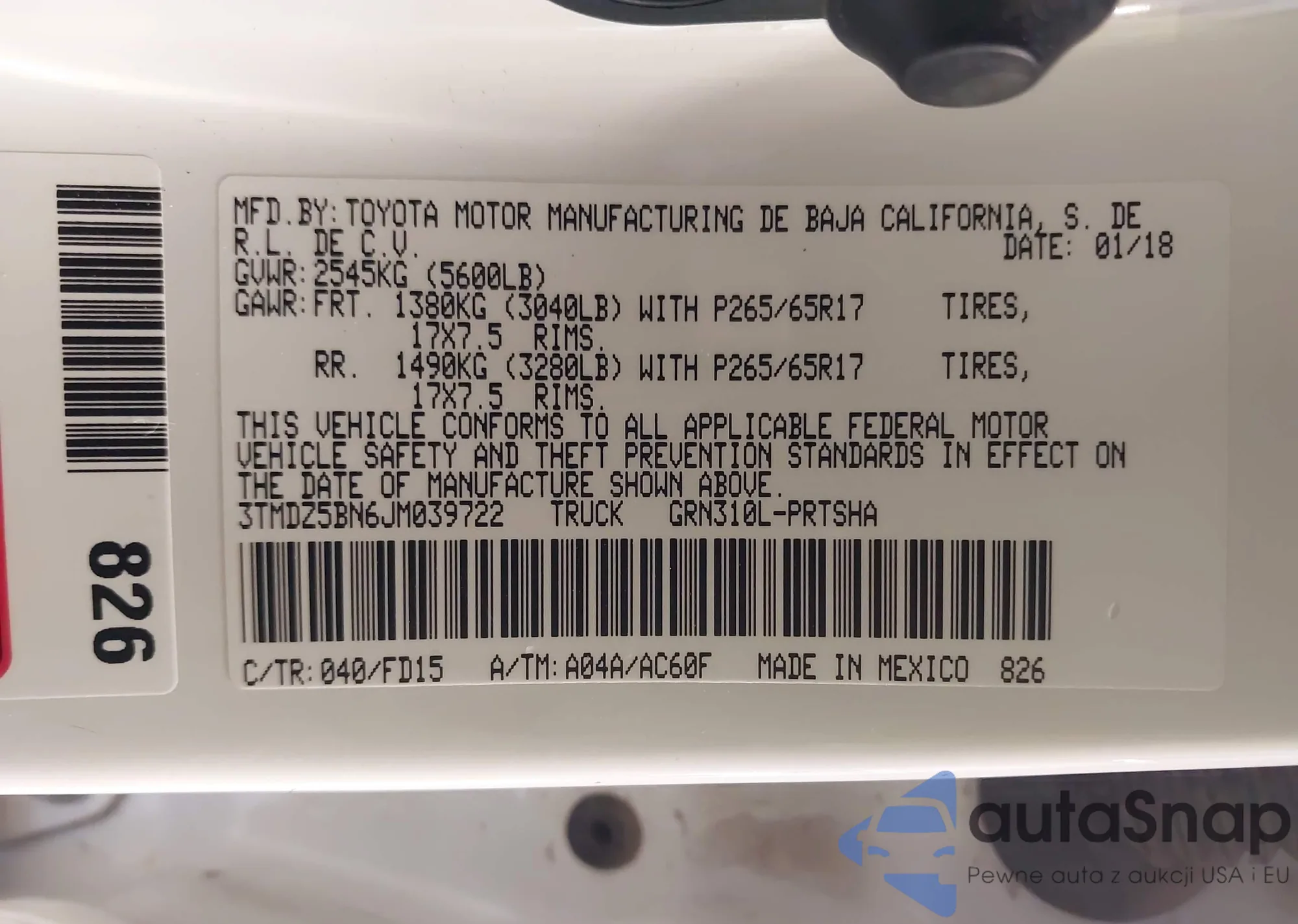 • VIN: 3TMDZ5BN6JM039722