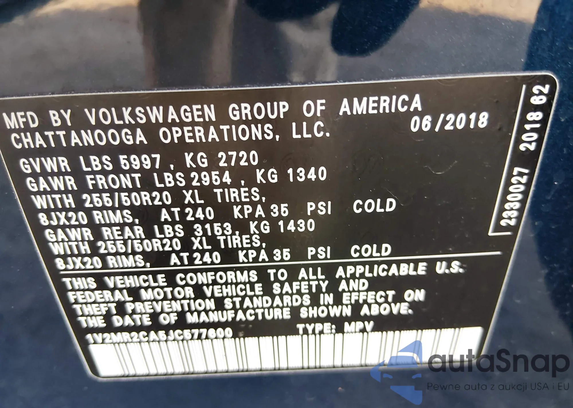 • VIN: 1V2MR2CA5JC577600