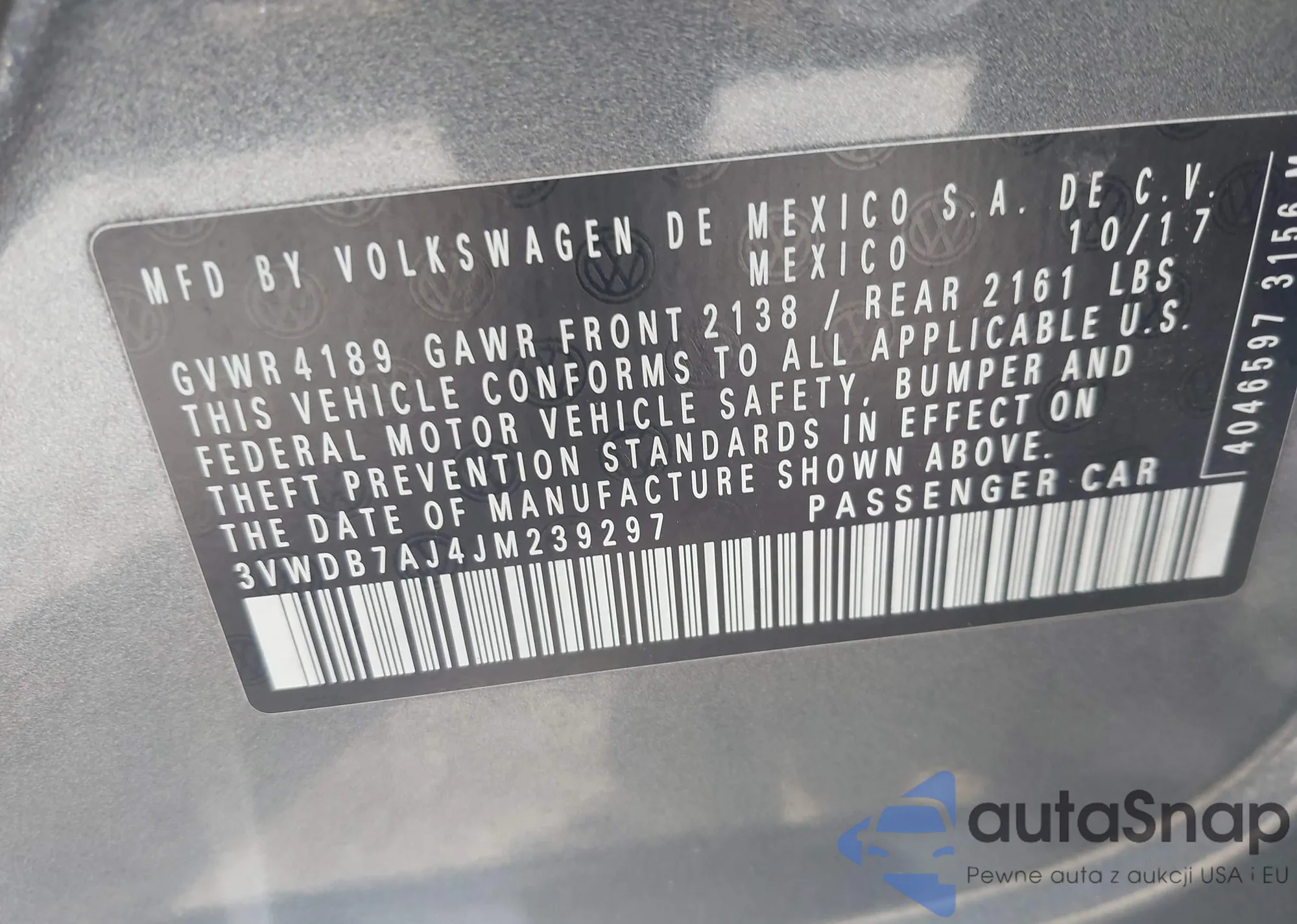 • VIN: 3VWDB7AJ4JM239297
