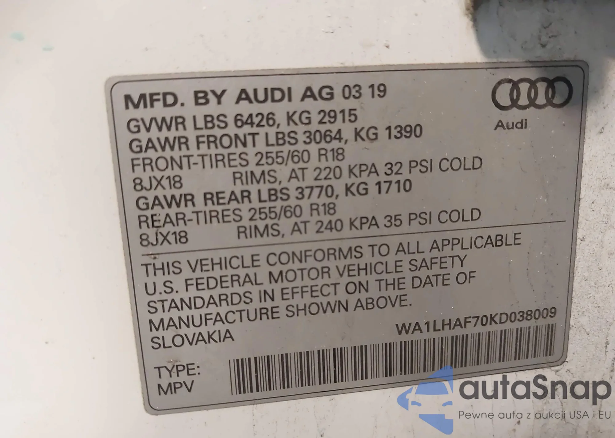 • VIN: WA1LHAF70KD038009