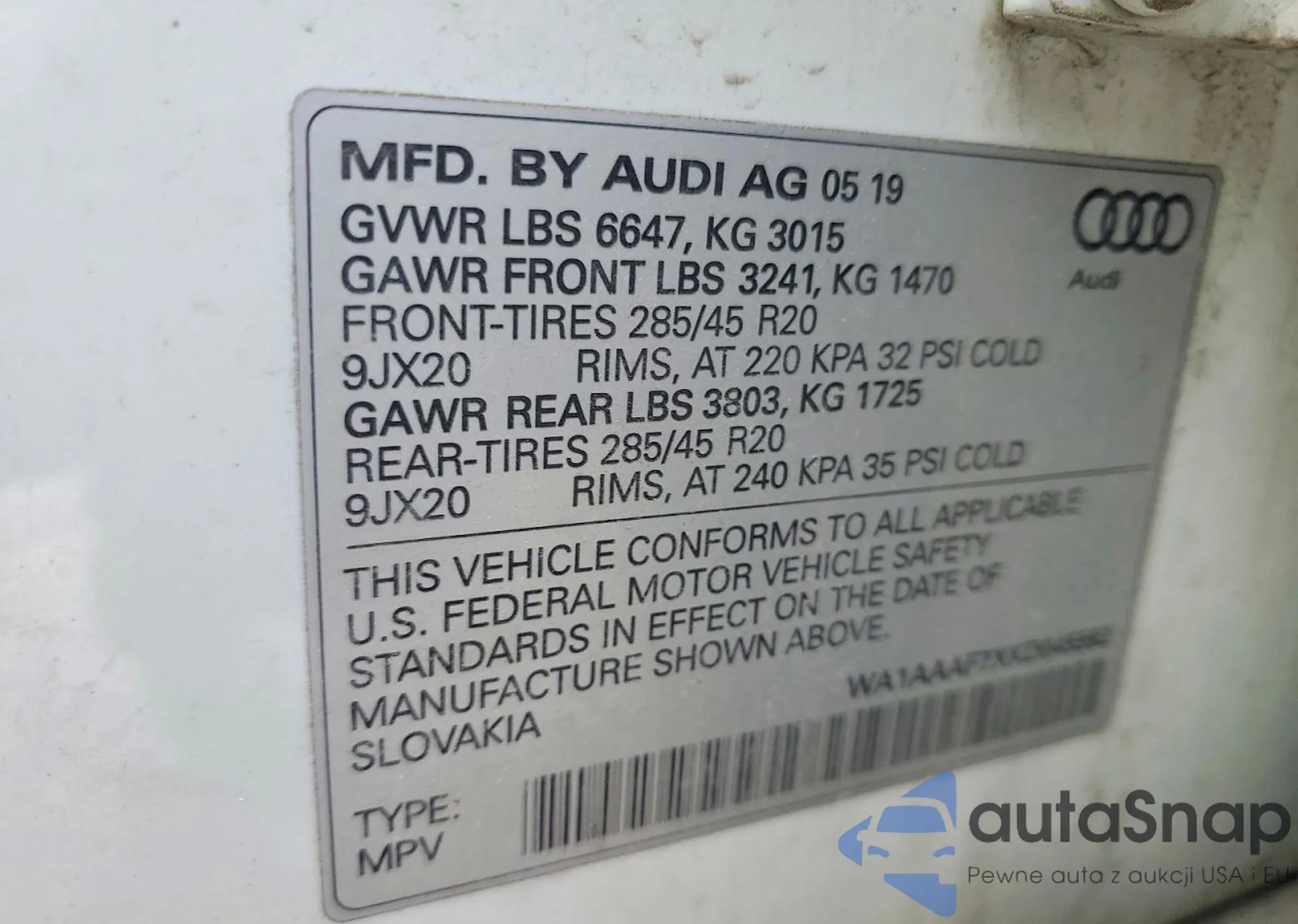 VIN: WA1AAAF7XKD045562