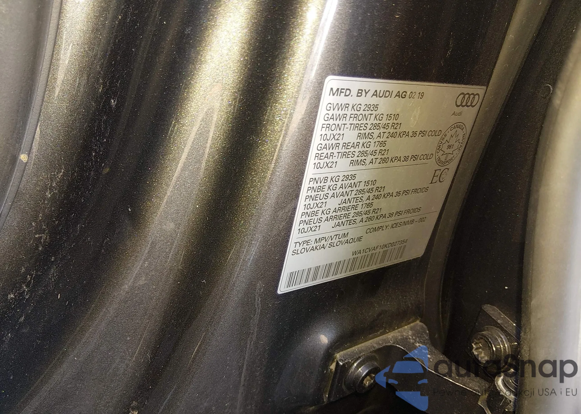 • VIN: WA1CVAF10KD027354