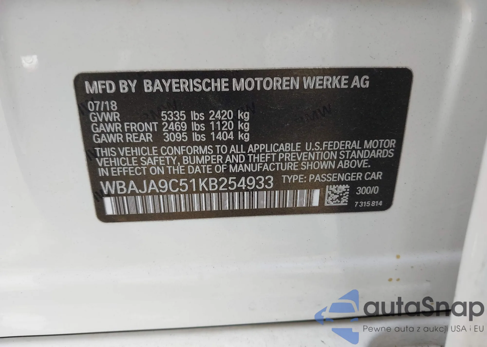 WBAJA9C51KB254933 IAAI