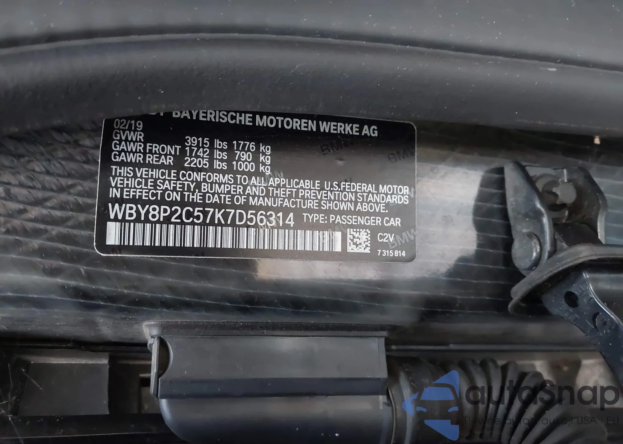 • VIN: WBY8P2C57K7D56314