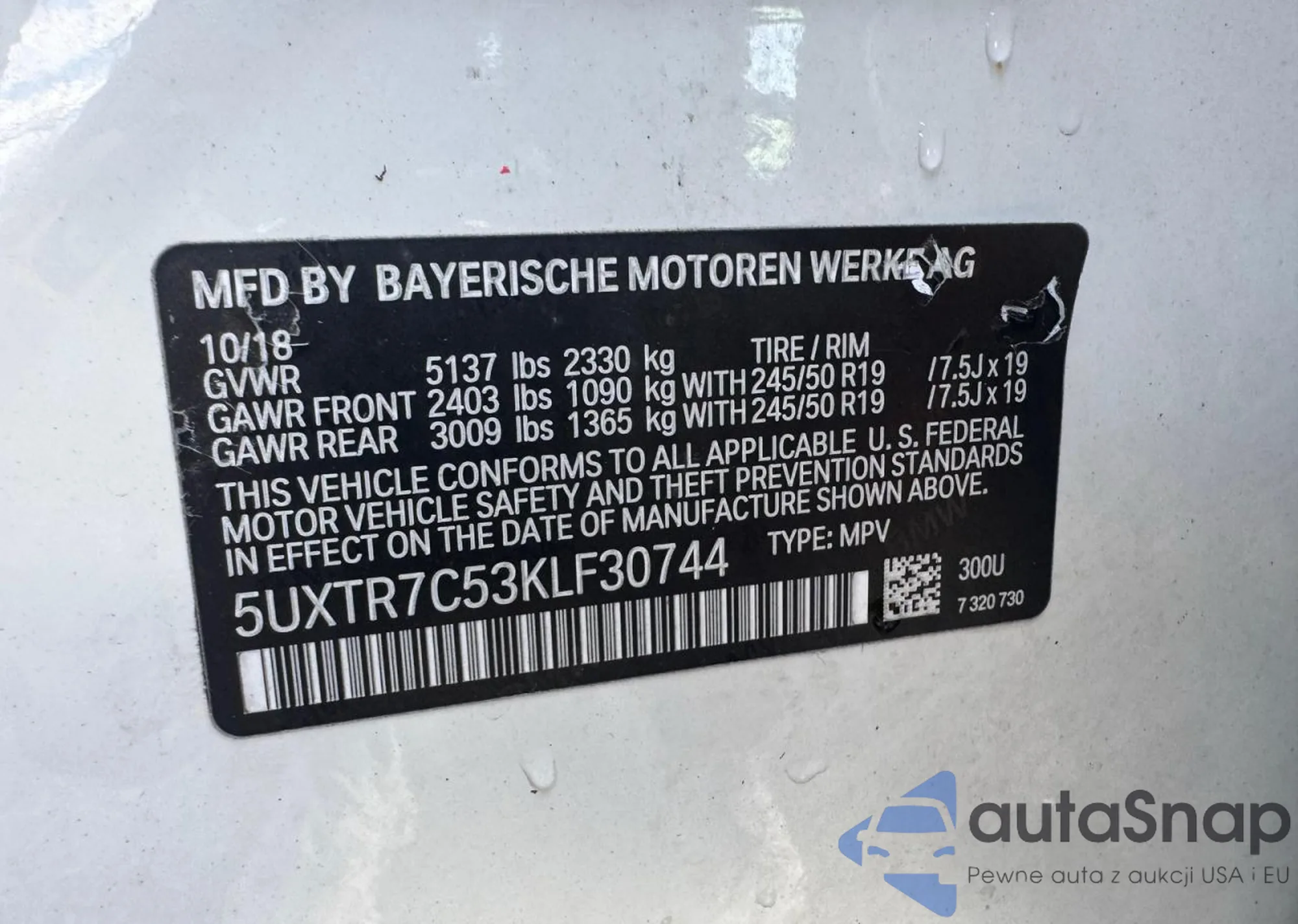 VIN: 5UXTR7C53KLF30744