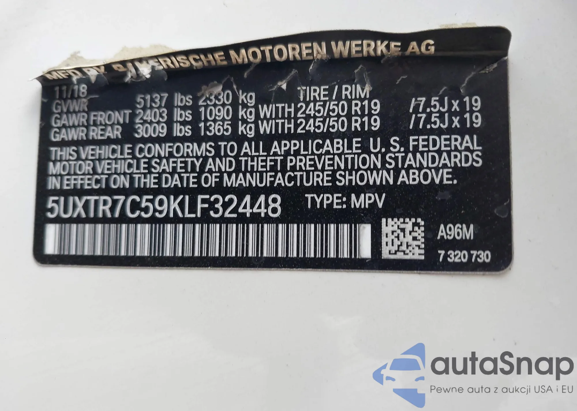 VIN: 5UXTR7C59KLF32448