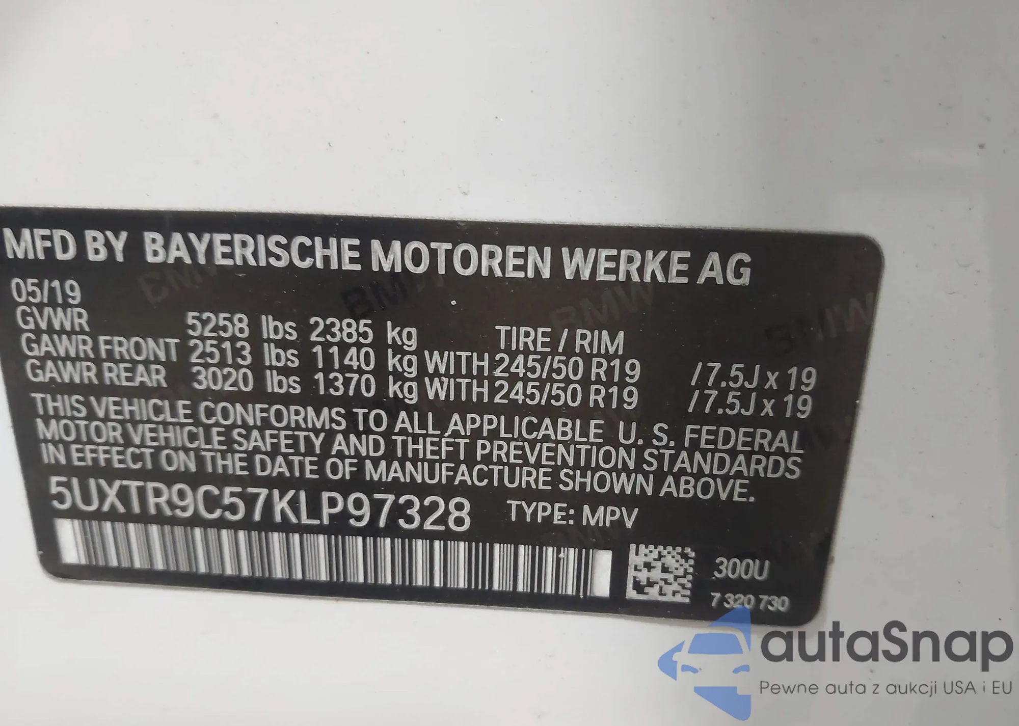5UXTR9C57KLP97328 IAAI