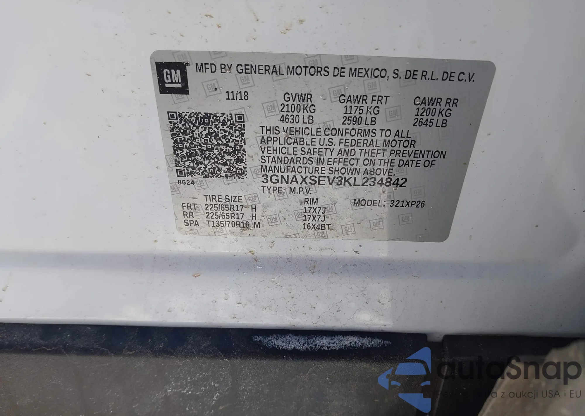 • VIN: 3GNAXSEV3KL234842